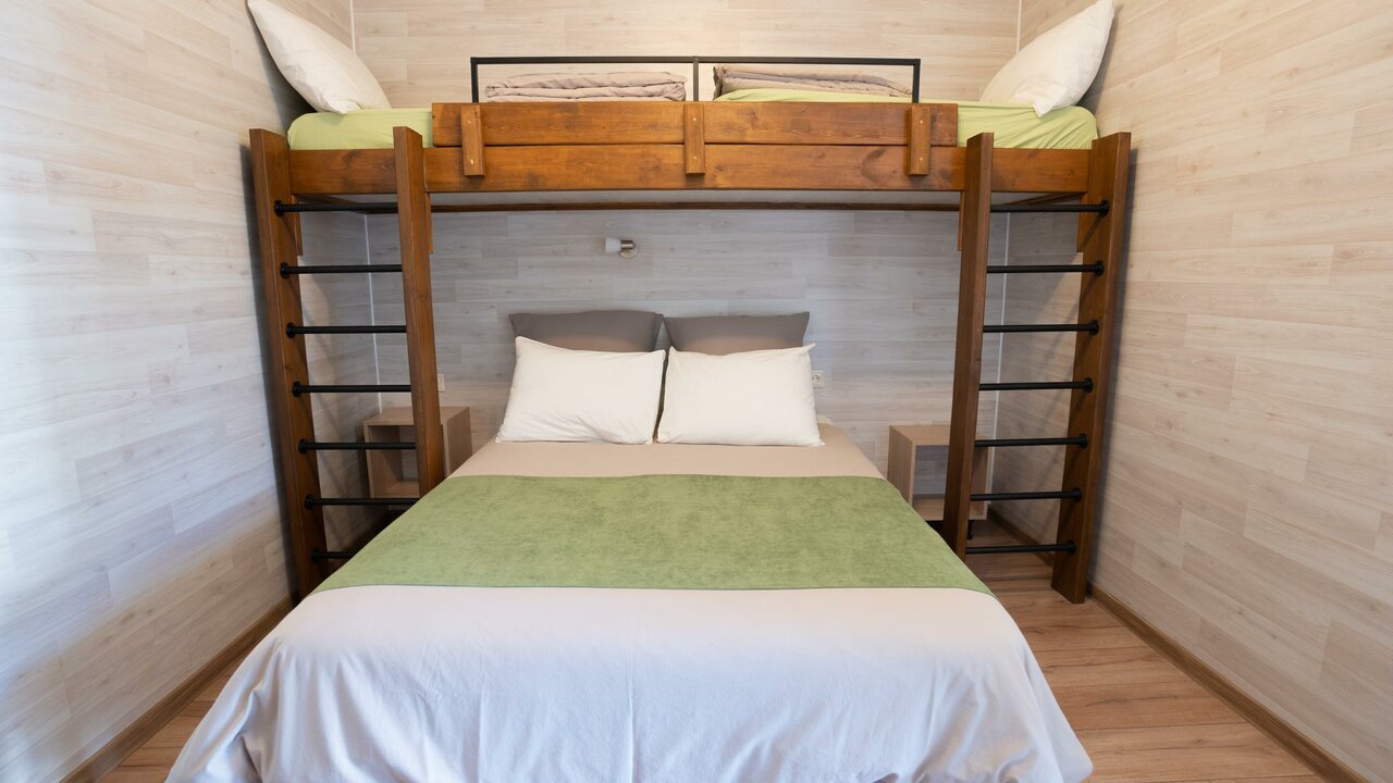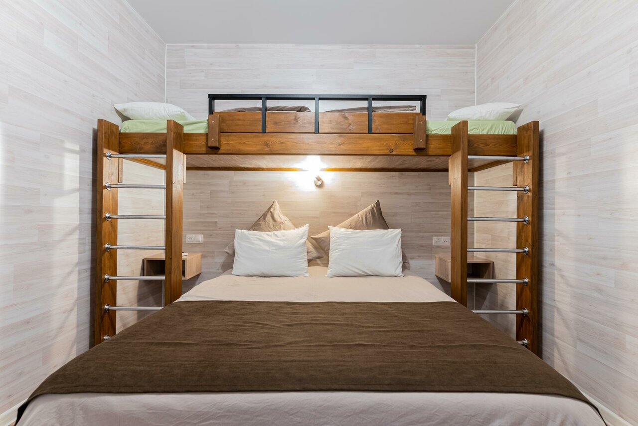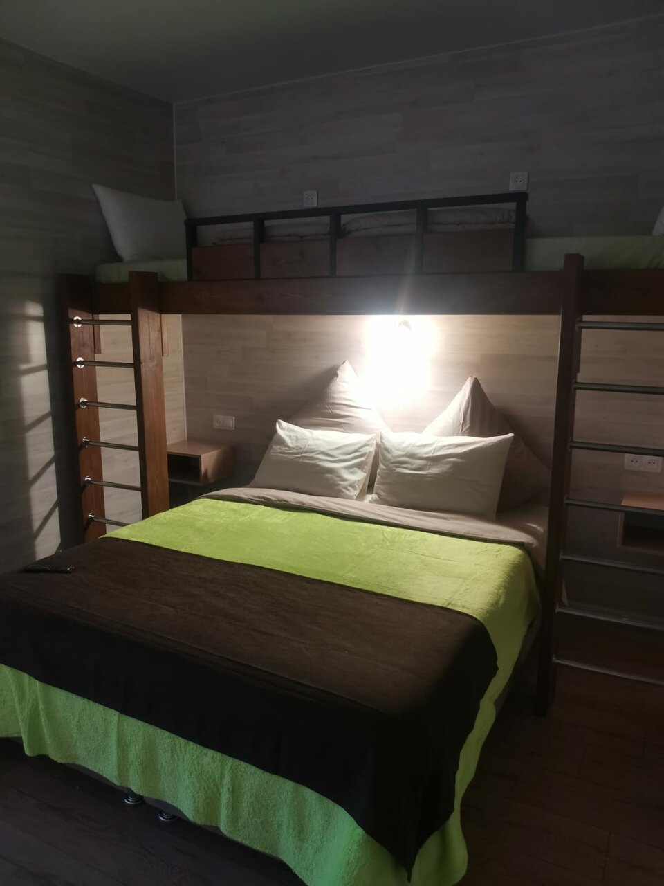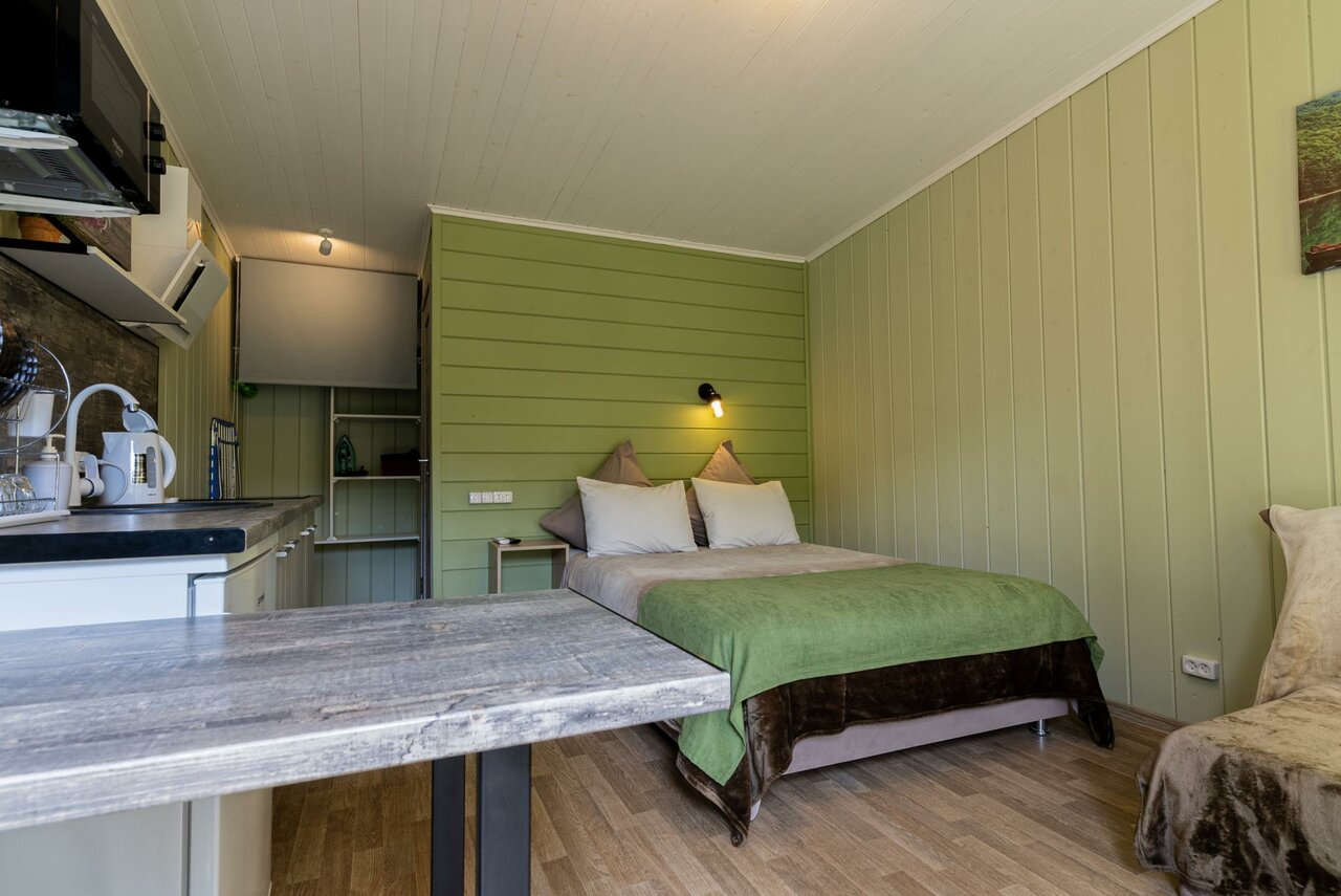 «Мини домик» идеально подходит для размещения 2 взрослых гостей, максимум 1 ребенка. Уважаемые Родители с ДЕТЬМИ до 2х лет не разрешено заселение. В домике расположена 2х ярусная кровать (нижний ярус 120 см шириной, верхний ярус 90 см шириной) .