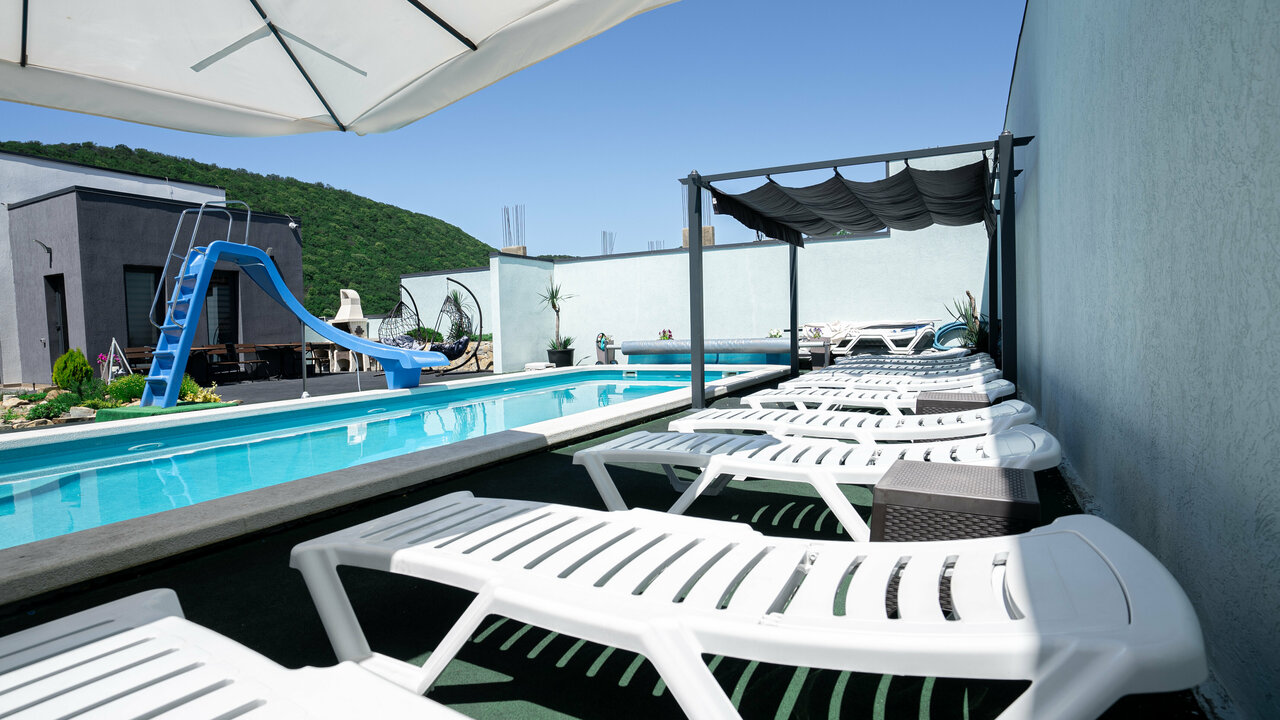 - Гостеприимные и доброжелательные хозяева.; Доступность достопримечательностей и озера.; Наличие бассейна и удобных лежаков.; Хороший кондиционер.; Парковка возле номера.