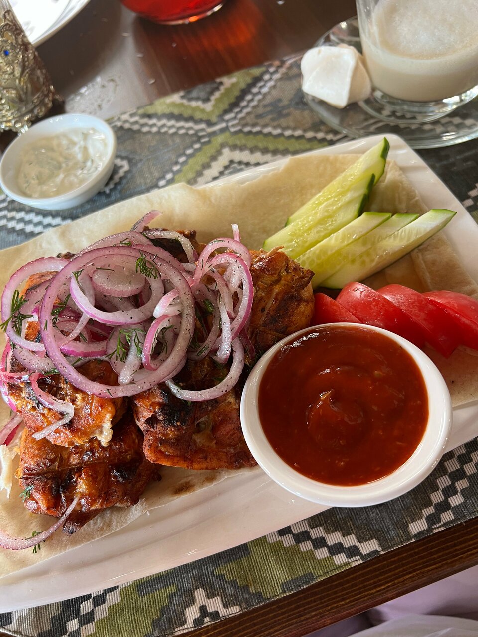 После посещения завода Абрау-Дюрсо решили заехать в данное место пообедать. Аккуратное кафе, вежливый персонал. Еда порадовала всех членов семьи. С выбором места не пропадали, рекомендую!