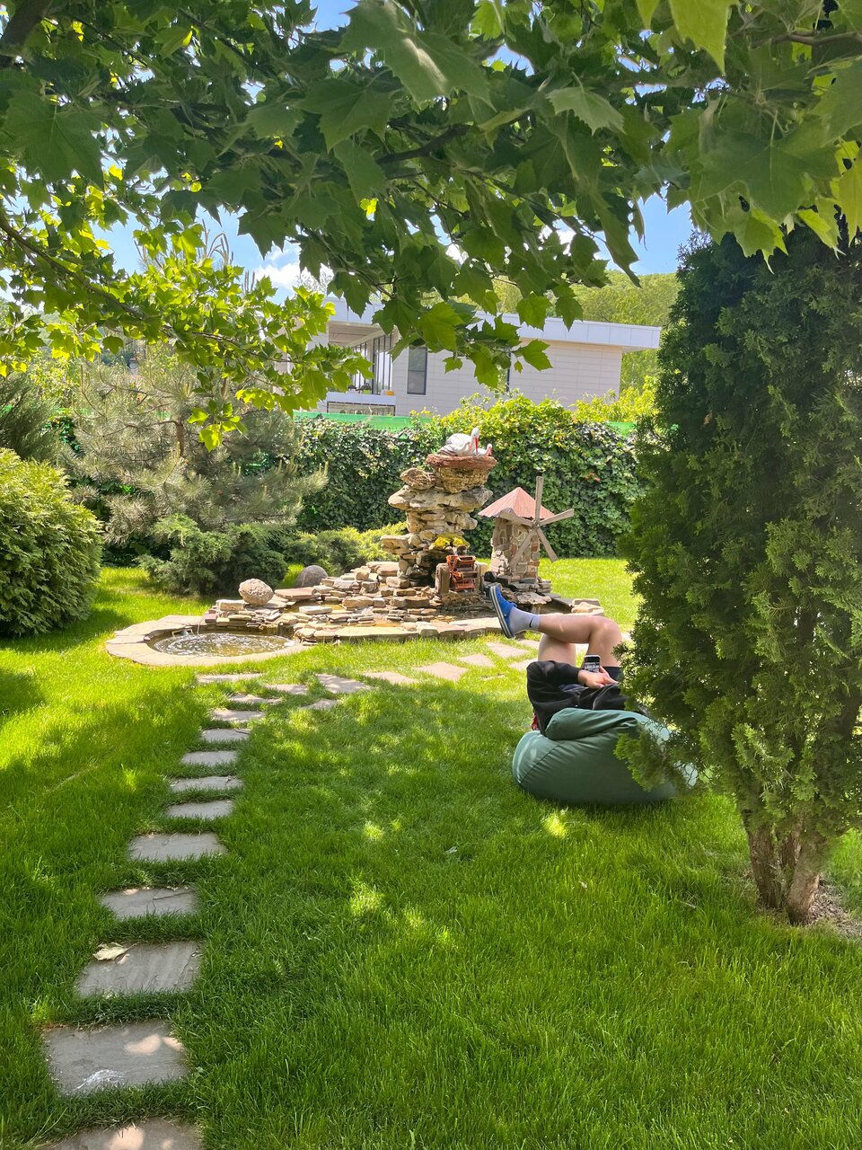 - Ухоженная территория с растениями и фонтанчиками