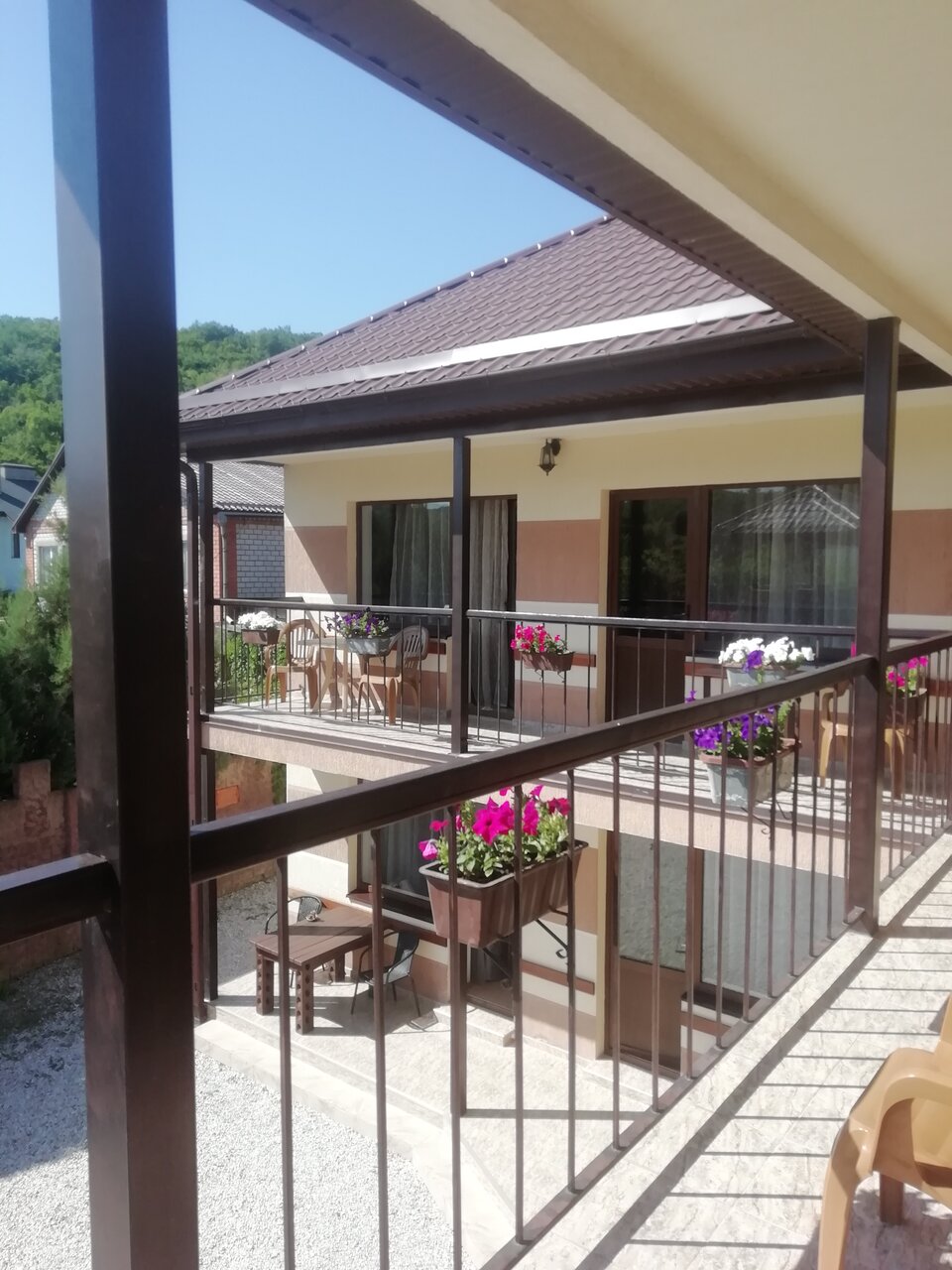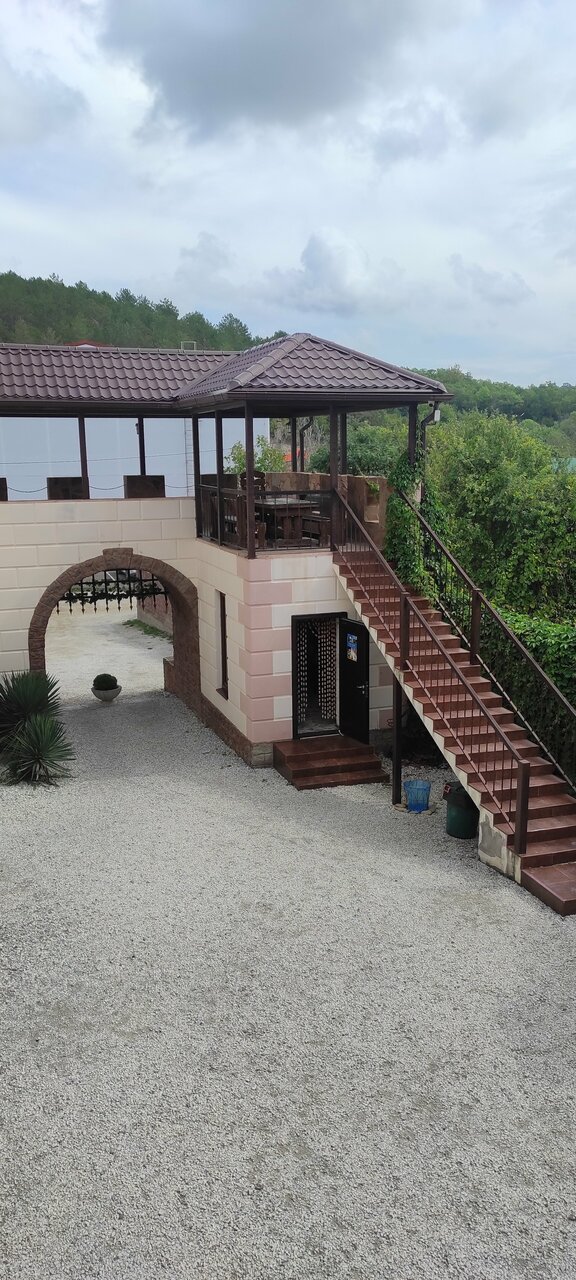 Очень красивый гостевой дом. Вид со смотровой плашадки изумительный. В номерах чисто. В номере душ, туалет, телевизор, холодильник.