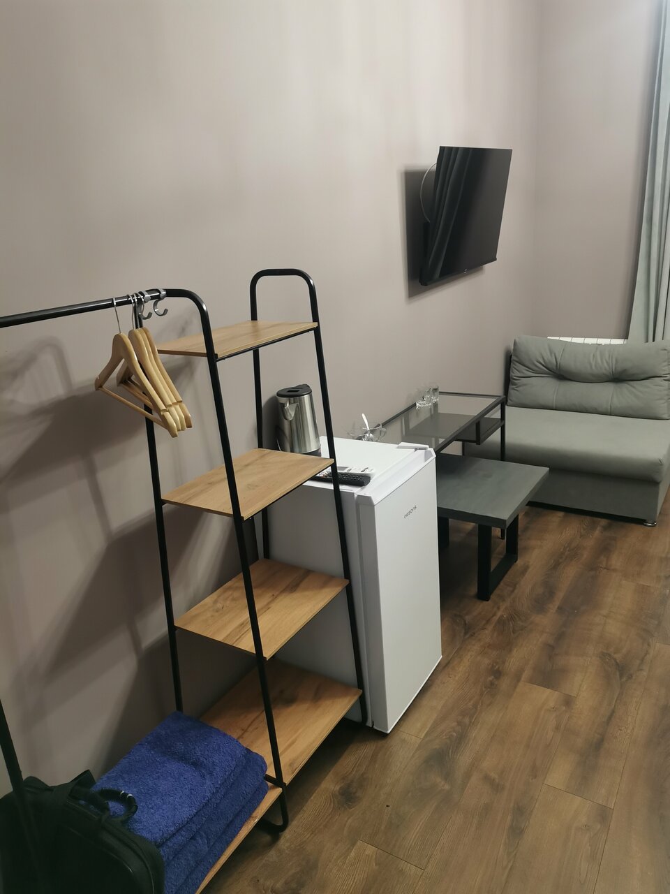 - Хорошая комплектация номера (чайник, телевизор, кондиционер, холодильник).