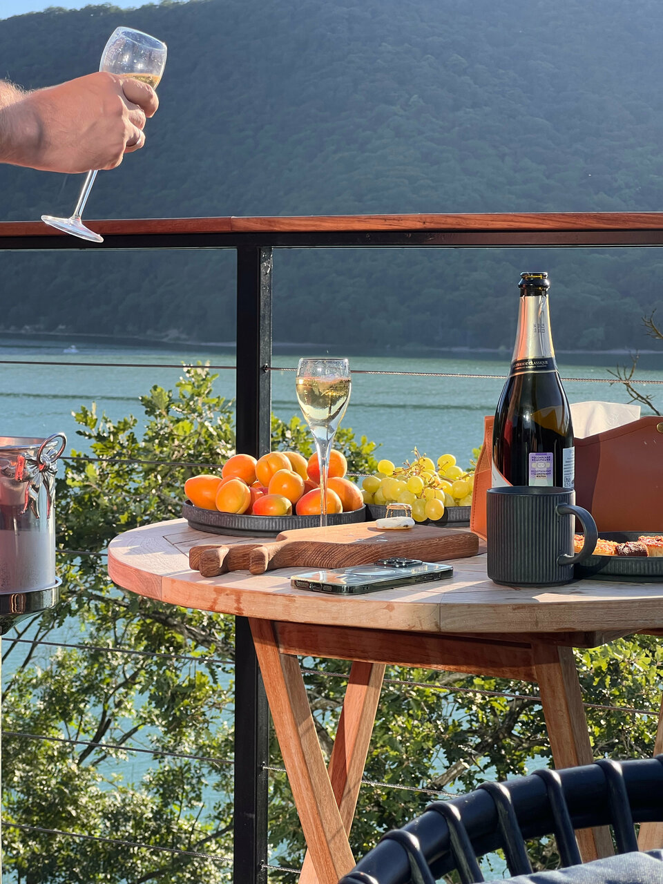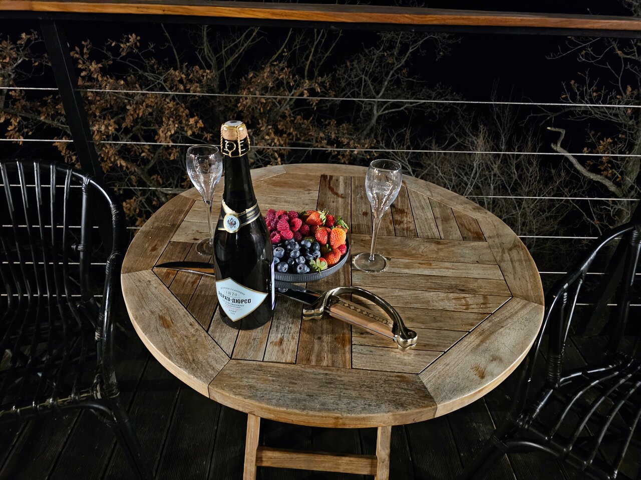 Шикарное место!!! Если хочется день-два просто покайфовать с бокалом шампанского и нереальным видом, то только сюда! Были в конце ноября, поэтому теплая джакузи пришлась очень кстати! После джакузи завернуться в плед и посидеть у камина… Это сказка! Ну и хочется отметить старания собственника — всё очень стильно, чисто, красиво, техника топовых брендов, хорошая посуда, полотенца, тапочки, халаты.. И спасибо за комплимент в холодильнике)