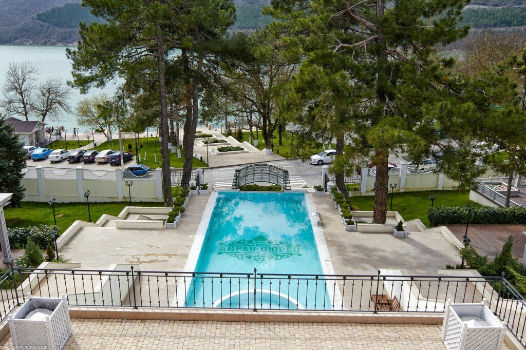 Бутик-отель 4★ в селе Абрау-Дюрсо на Промышленной улице, 38. Работает круглосуточно, предлагает номера с кондиционером, Wi-Fi, мини-баром и санузлом. В инфраструктуре: ресторан, кафе, бар, спа-центр с бассейнами (открытым и подогреваемым), сауной, хаммамом, тренажёрным залом и массажем. Для гостей — бесплатная парковка, велопрокат, трансферы, собственный пляж, детская площадка и услуги консьержа. Заезд — с 15:00, выезд — до 12:00.