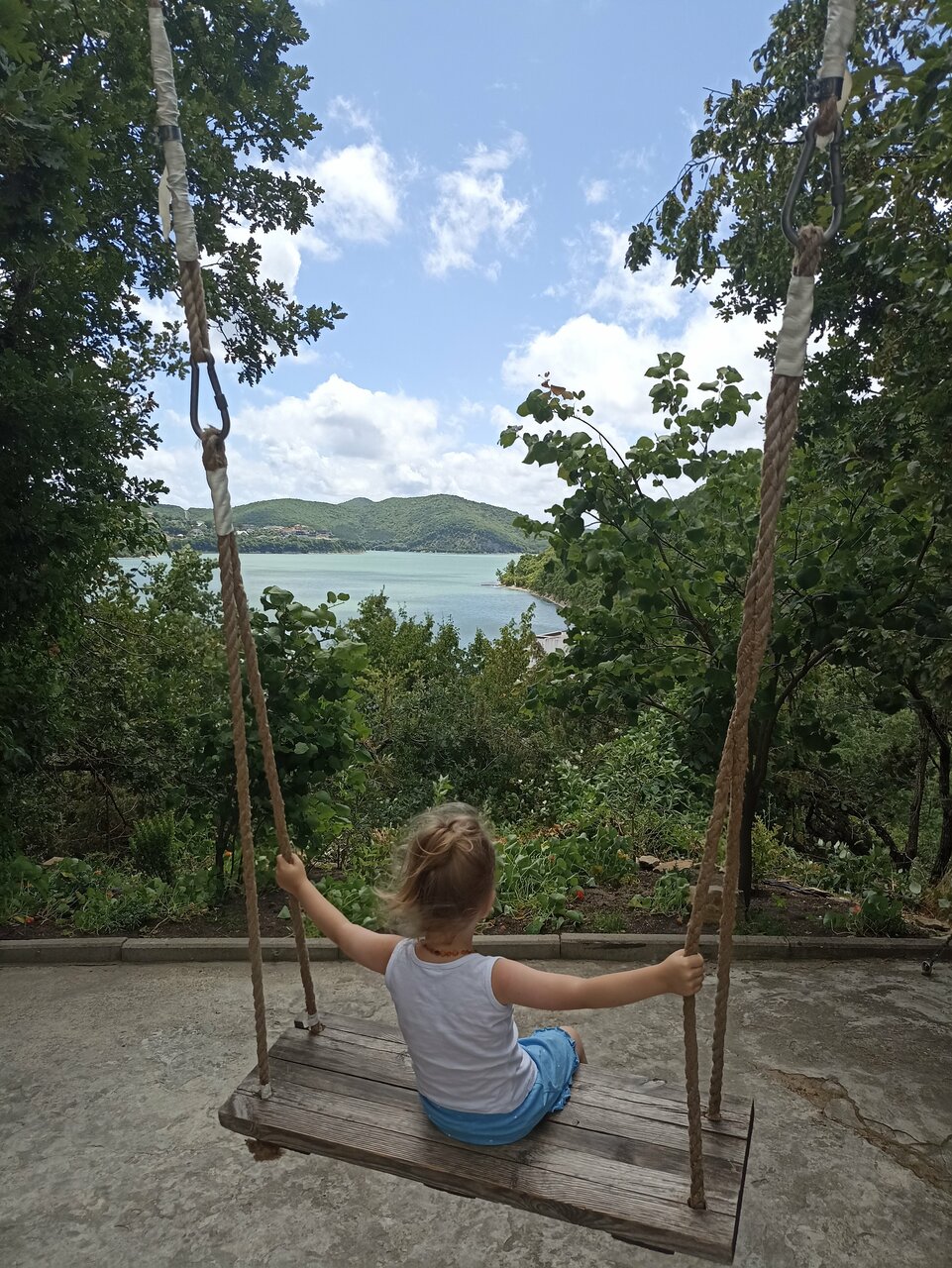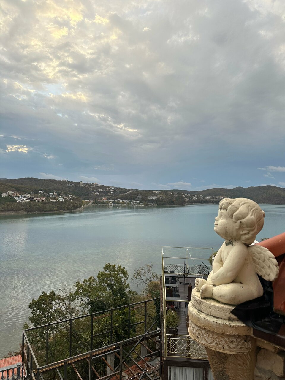 Вид с высоты отеля замечательный. Место очень популярное. Поэтому цены в кафе заоблачные. Жили в апартаменте на 3-м этаже, номер большой с восточной отделкой, но вонь канализации в туалете и слабая вытяжка. Натяжной потолок с дырой постоянно живет своей жизнью — тарабанит Еда на завтрак скудная и однообразная. Все плюсы, это вид на озеро. И это за 15000 в сутки!