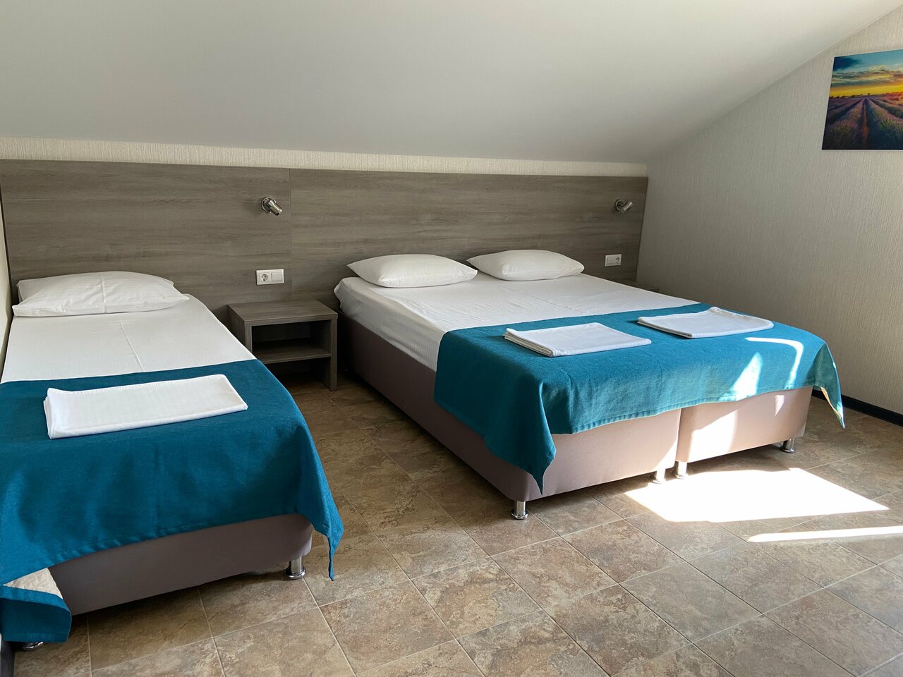 Очень тихое и уютное местечко для семейного отдыха. Всего 2 номера. В номере двуспальная кровать и односпальная. Очень чисто и аккуратно. Есть уличный бассейн, правда, не подогреваемый. Нам очень понравилось. Ещё есть баня. Аккуратная, уютная. По настоящему семейная. В общем для тихого отдыха семьей самое что ни на есть подходящее место