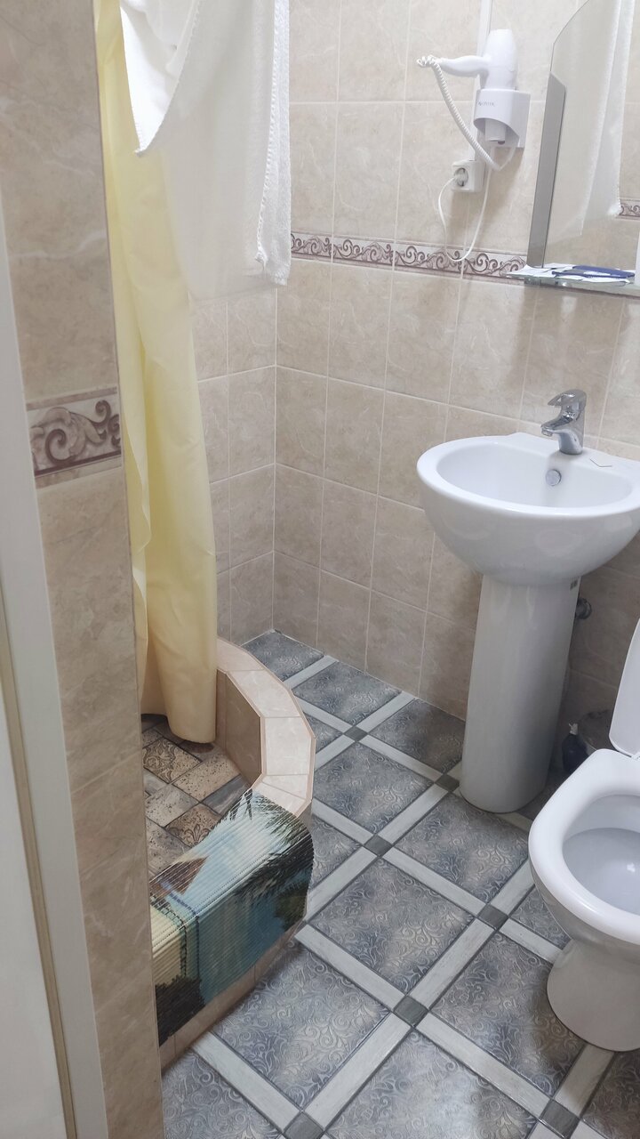 Отличный гостевой дом) Приятные, доброжелательные хозяева.На этаже есть микроволновка и гладильная доска с утюгом. В номере-чайник,холодильник,телевизор,кондиционер.Рекомендую для семейного отдыха. За дополнительную плату можно пользоваться бассейном, и заказать завтрак