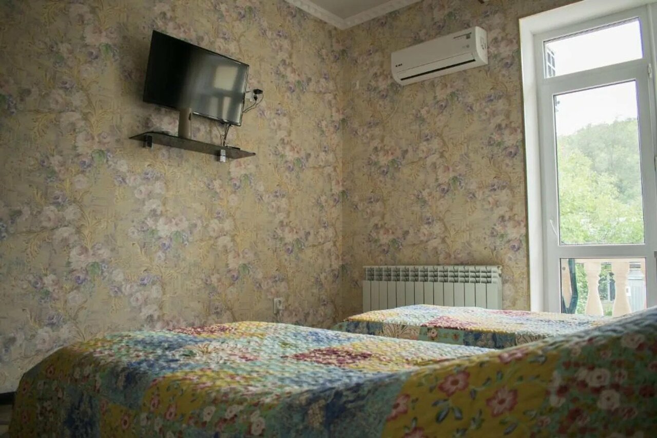 Хотели забронировать номер в Яндекс путешествиях, но по факту оказалось даже дешевле на месте. Приветливые хозяева, наличие парковочных мест во дворе и короткий маршрут до набережной пешком. В номере отличный ремонт, рабочий кондиционер и вид из окна. Чистота на 11 из 10. Атмосфера антиквариата в коридоре — это особенность данного места Останавливались на одну ночь, забыла пофоткать номер — зато сфоткала чудо волка и приятные зеркала на входе во дворе, что уже придает эффект гостеприимства и интересности места
