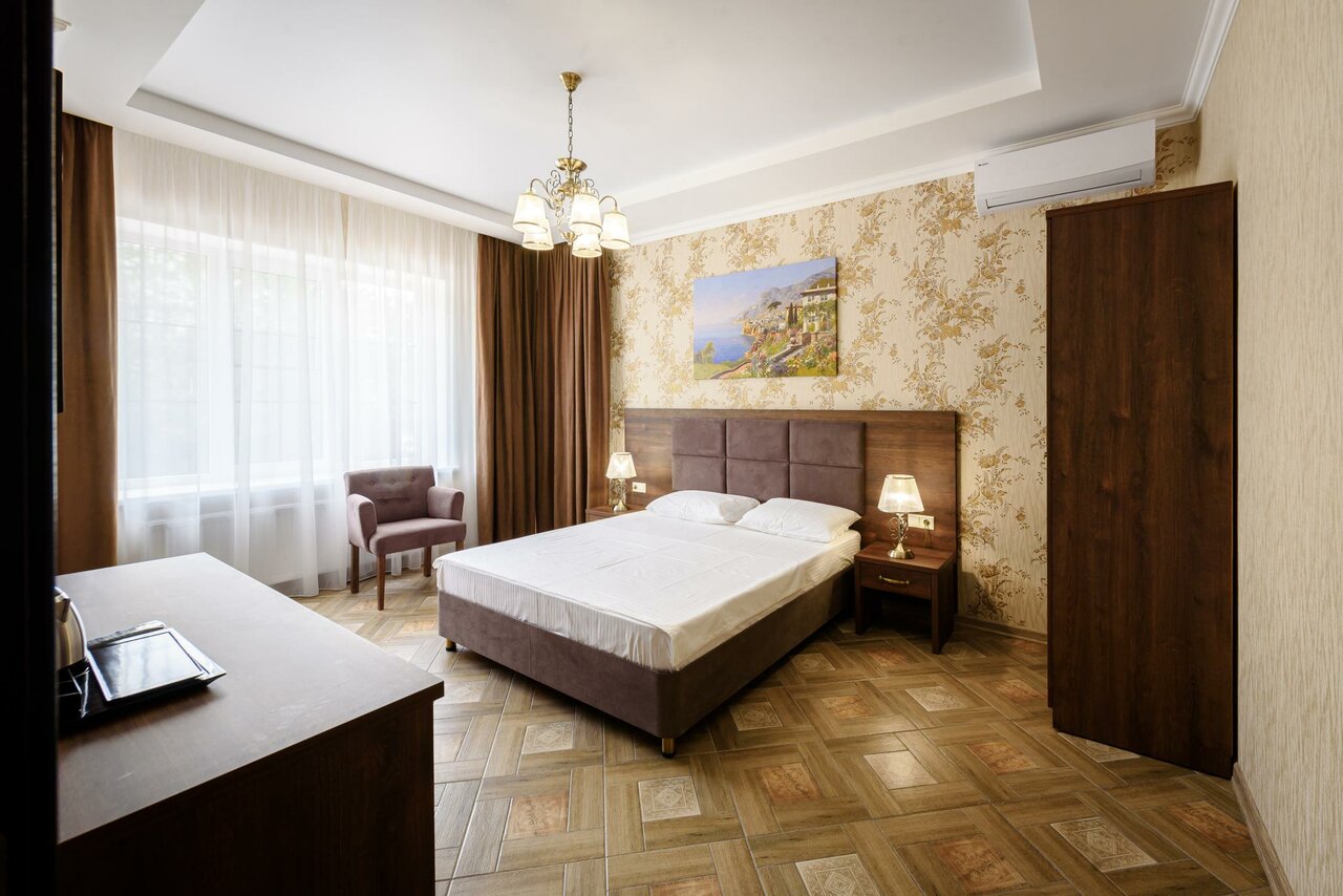 Отличное местечко прямо на озере Абрау. Номера в нарядной классике, очень просторные. Тихо-тихо. Спалось как на облаке, потрясающие виды из номера