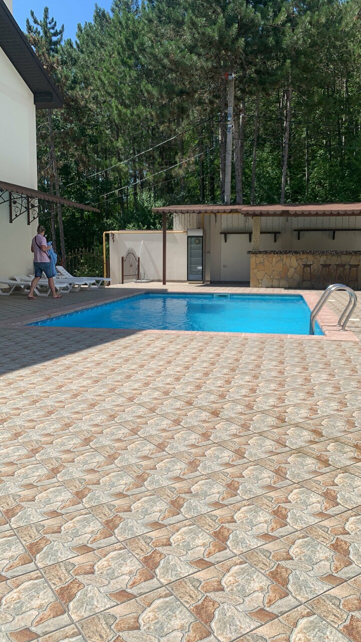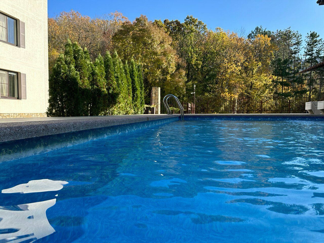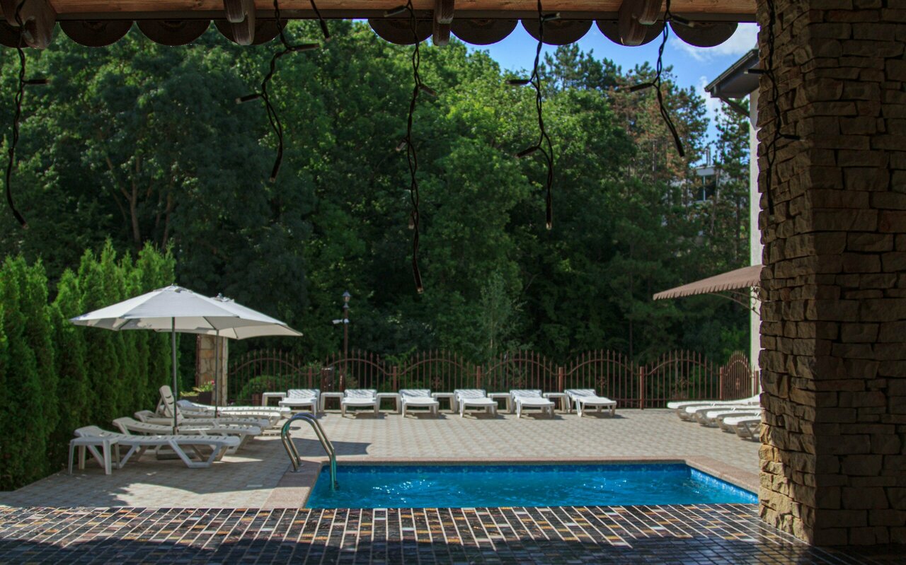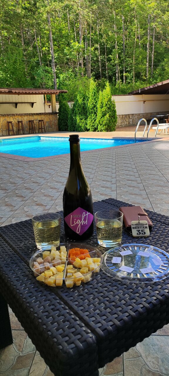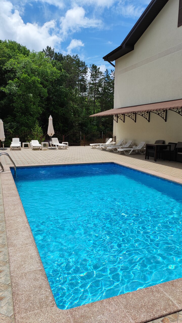 Расположение хорошее. Номера в порядке. Бассейн. К сожалению, уборка по запросу, питание в центре города Абрау. Полотенца и принадлежности для душа не меняются ( только по запросу). Цена по моему мнению за номер завышена, так как сервис отсутствует.