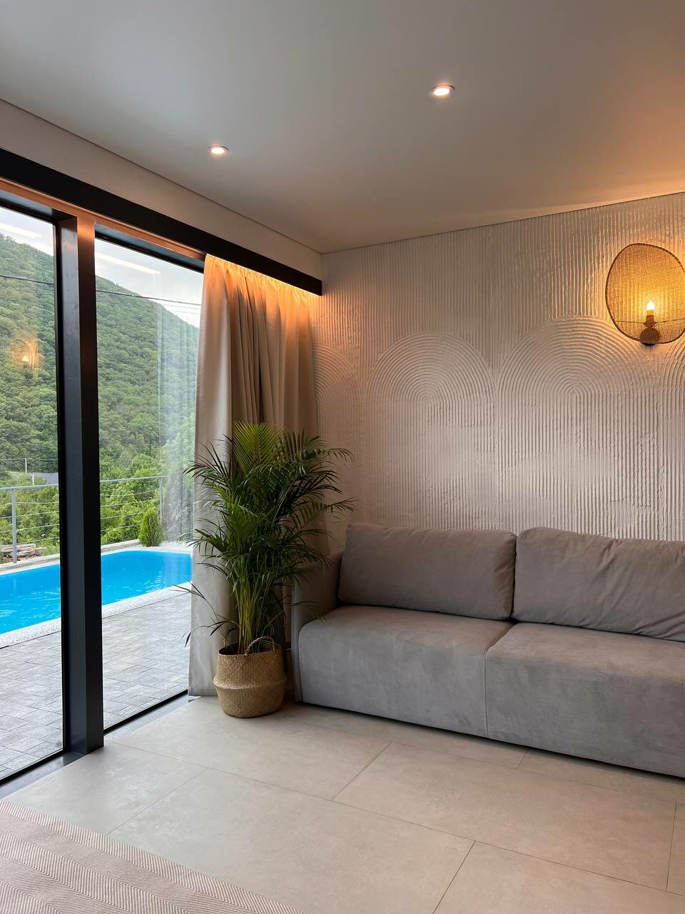 Посчастливилось отдохнуть всей семьёй в этом прекрасном месте! Все фото соответствуют действительности. Для отпускали искали дом с ‘личным’ бассейном, вдали от шума и суеты и НАШЛИ! Дом новый, стильный, оборудован всем необходимым, ухоженный бассейн. Шикарный вид на горы. Очень радушные хозяева. Поэтому, если вы ищете уединенное эстетичное место с личным бассейном, то вам однозначно сюда. Рекомендуем.