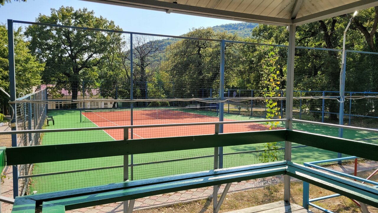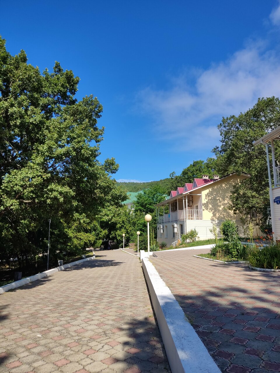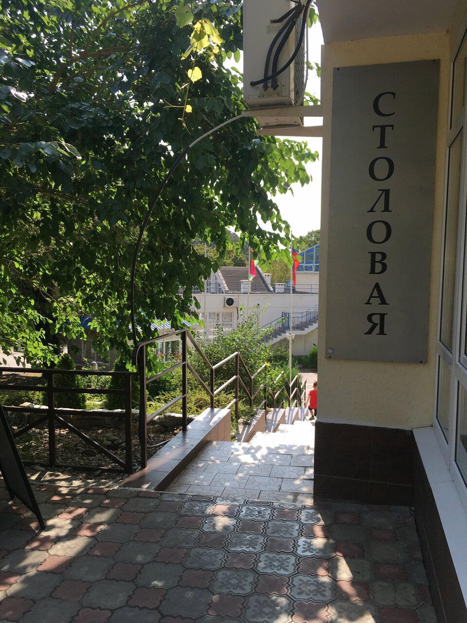 Заповедник СССР. В самом прямом смысле слова. Столовая со столовской едой на блюдцах, советский персонал, советские номера, хотя и слегка подшаманенные. Из развлечений — шахматы, библиотека советской поэзии, минеральная вода в бювете. Но море прекрасное, пляж Абрау отличный с неплохим баром. Да и еда в столовке, пока из ушей не полезет, приличная. Ещё хорошие детская и спортивная площадки, ухоженная территория. Если хотите для разнообразия советского спокойствия и распорядка, приезжайте.