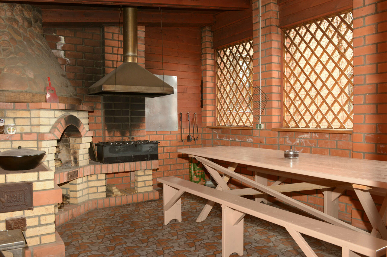 - Хорошая мангальная зона (мангал, казан, беседка).