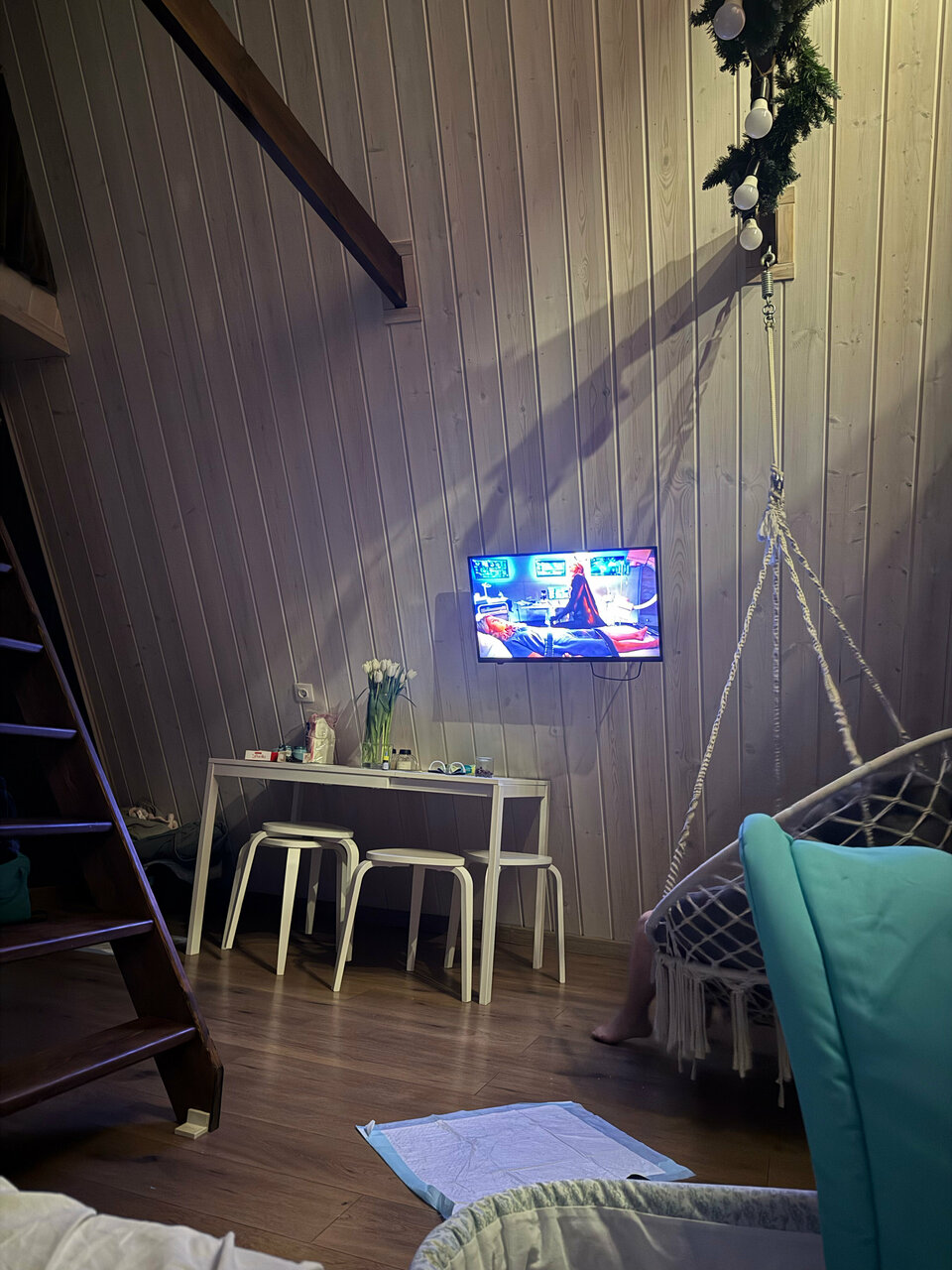 Очень крутое, уютное и атмосферное место. Все что нужно там есть: домик, лес(природа), мангал(решетка, шампура), можно докупить розжиг и спички на месте. Два этажа, индукционная панель, столовые приборы , все как надо! Идеальный вариант для фотосессии!