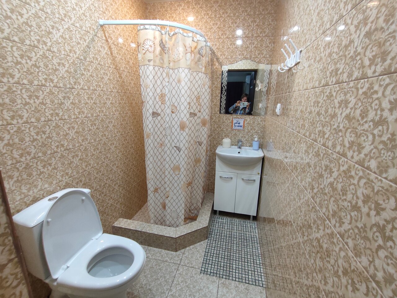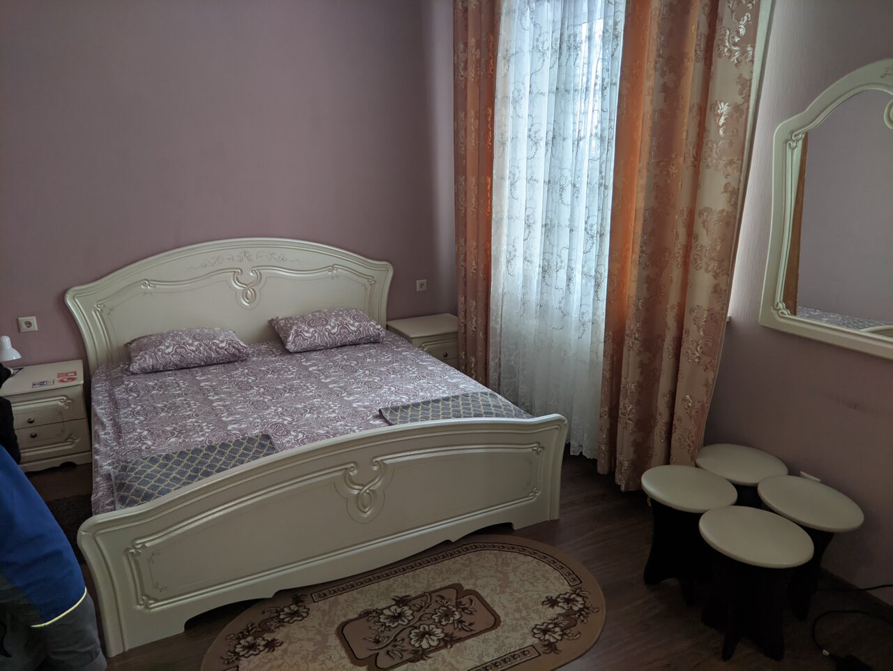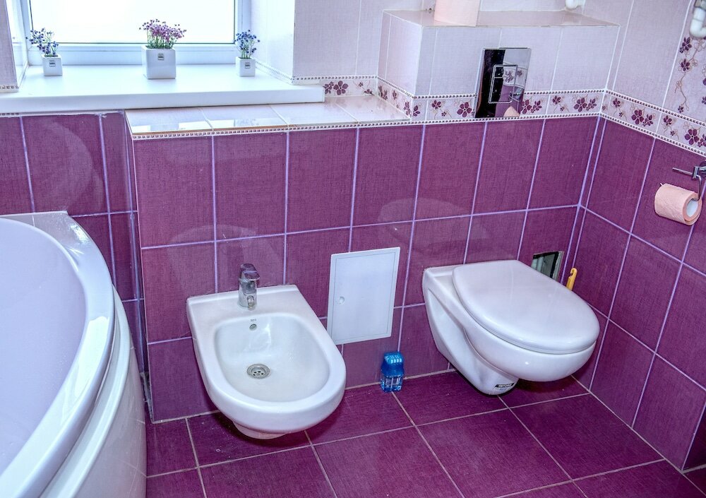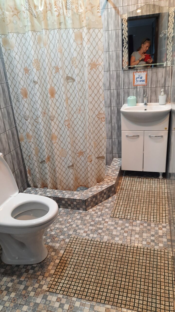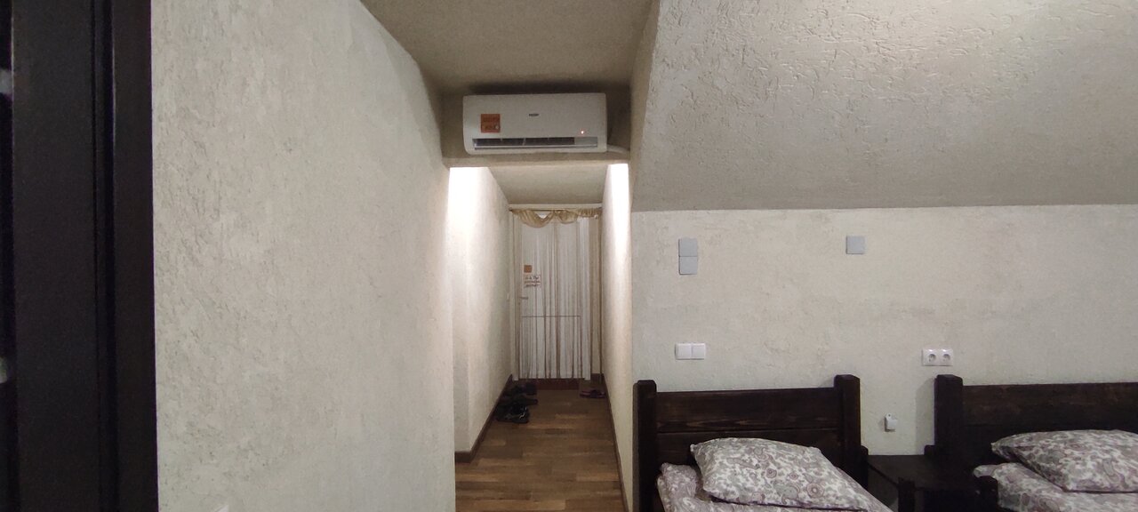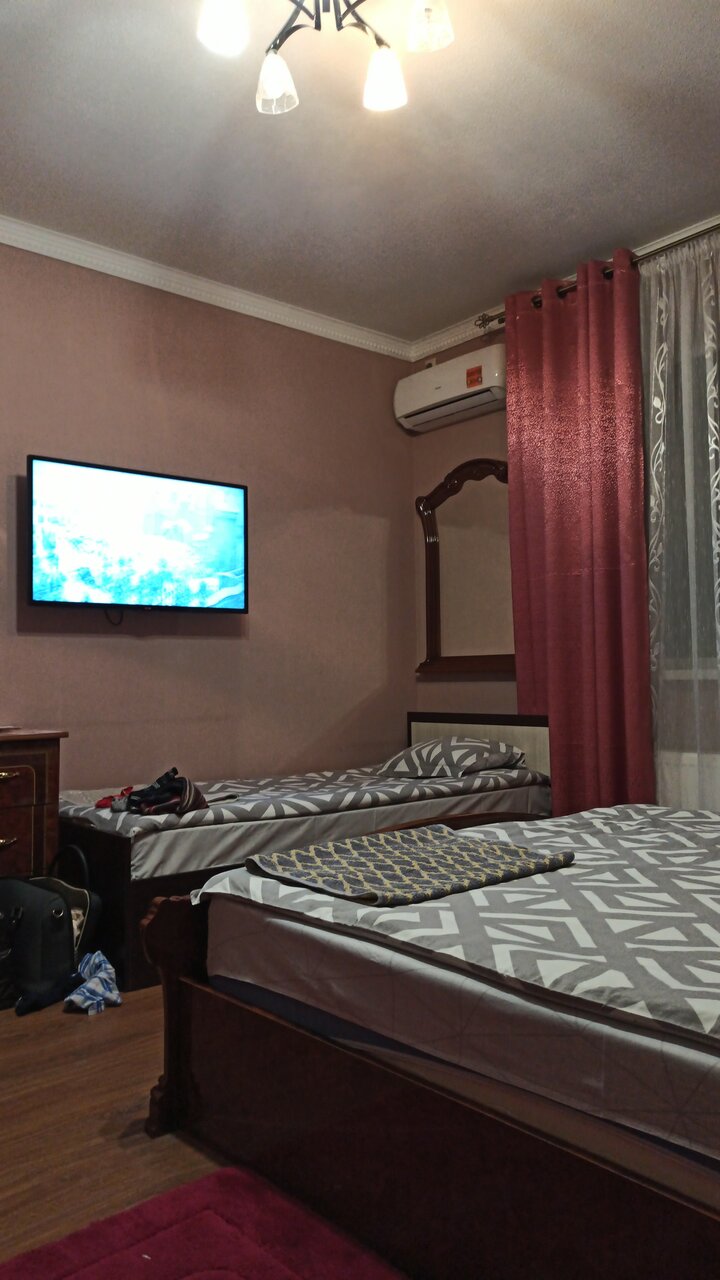 Ну так себе…. Не понимаю восторженных отзывов. Сняли номер на одну ночь. С виду было чисто. Заехали. Было довольно поздно легли почти сразу спать, но очень мешала работающая вытяжка в туалете, гудела как взлетающий вертолет… спать невозможно . Кнопки выключить ни где не было. Позвонили хозяевам, они отключили автомат идущий на вытяжку… ура тишина . Только утром мы поняли почему нет выключателя))) когда проснулись, в номере стоял жуткий запах , вонь из санузла Оооочень вонючий санузел!!!!!! Вот почему вытяжка постоянно работала без возможности выключить( как во всех санузлах) Еще и написано что вода из под крана питьевая…. От запаха войти туда тошно! Какое пить))) Матрасы не удобные. Плюс — парковка.