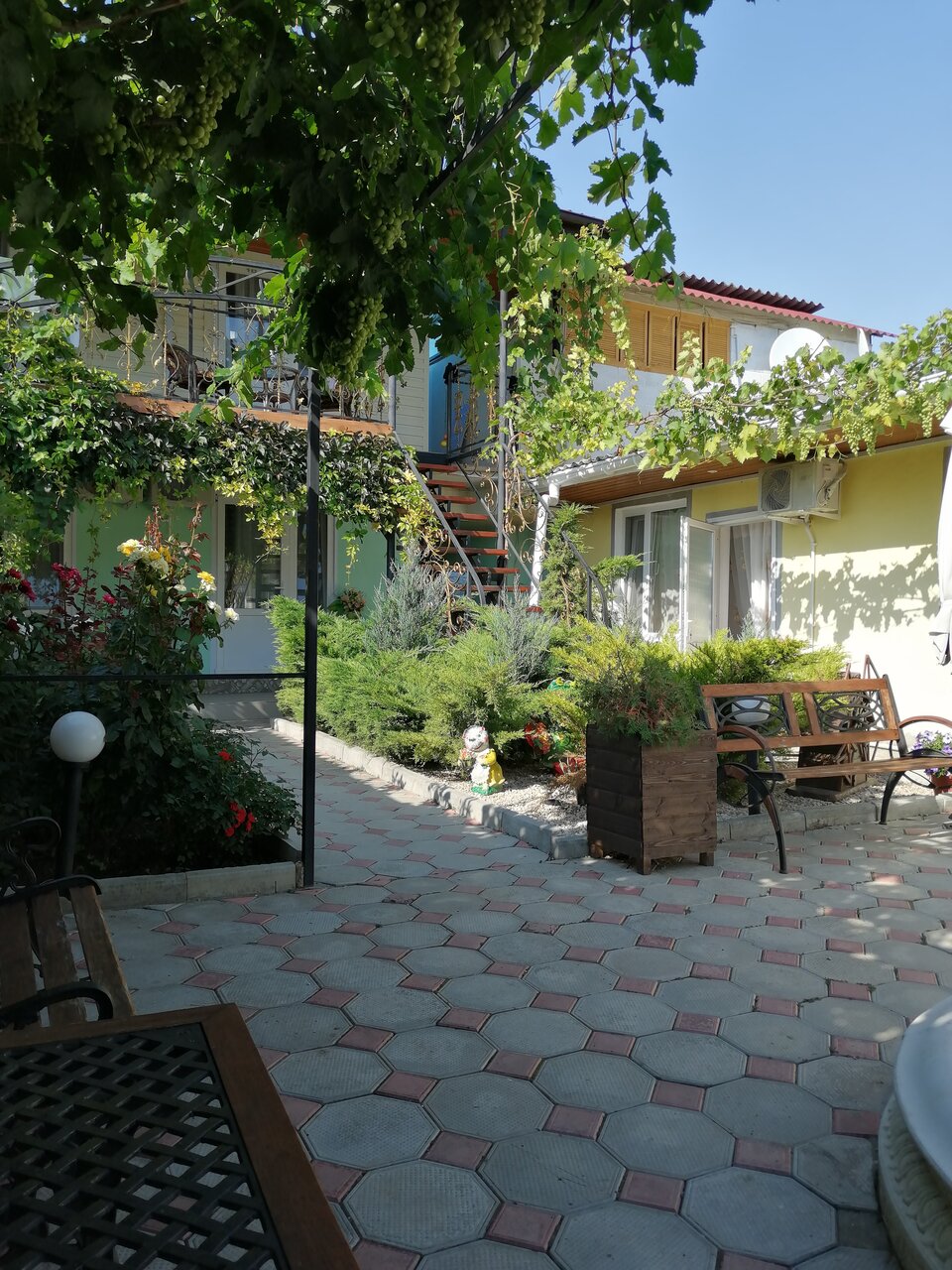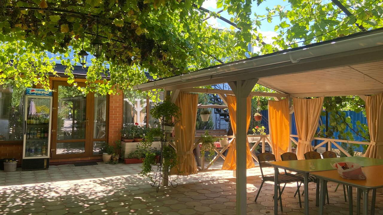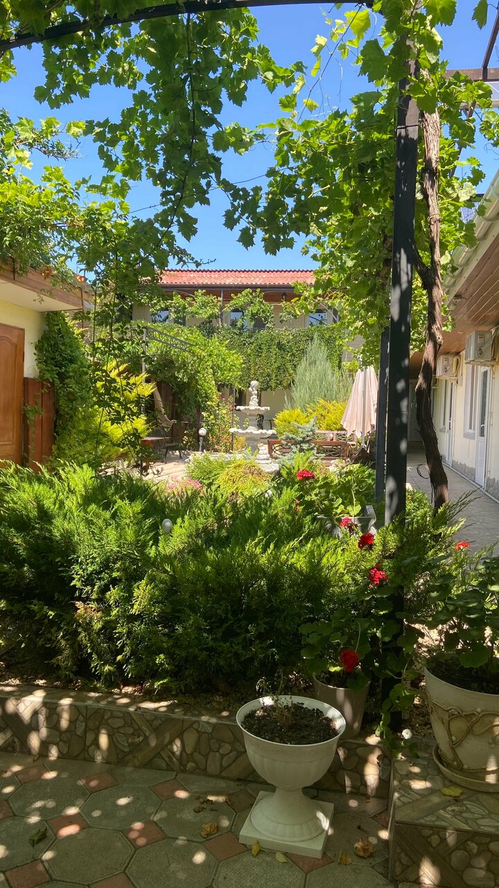Номера хорошие, чисто, просторно, все есть. Территория отличная, вся в цветах и растениях. Есть кухня, стиралка. Хозяева радушные! До моря недалеко.