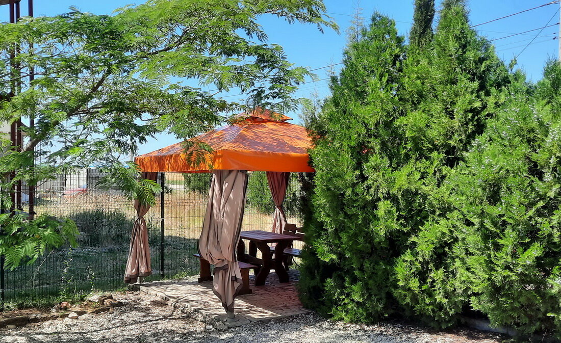 Гостевала 11 дней, уезжать грустно. Минусов не обнаружила. Номер мой и остальные (посмотрела) со всем необходимым комфортом — санузел с душевой, телевизор, холодильник, вентилятор, удобная кровать, стол, стулья. Номера просторные, со вкусом подобраны обои, кафельная плитка, шторы, тюль. Интернет на всей территории и в номерах хороший, устойчивый. Есть просторная кухня со всем необходимым оборудованием и посудой. Да есть минус — водопрводная вода жесткая, мне не понравилась — совершенно невкусный чай и кофе на этой воде. Но прекрасная вкусная вода в ближайших магазинах по 3 рубля за литр. Мангал, качели во дворе, потрясающий ароматный воздух (цветы везде, куда глаза глядят). Про море писать — особая песня! Еще мне очень понравилась администратор Ирина — приветливая, ответственная, в любое время суток готова придти на помощь. Еще раз повторюсь — жаль уезжать.