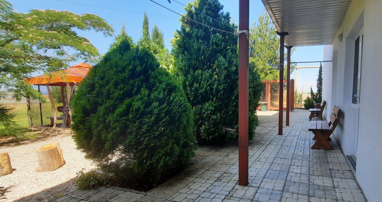 Отдых для любителей тишины,до моря(пляж) пешком минут 15-20,а по прямой видно из номера. Номера хорошие, есть номера с кондиционером есть с вентилятором, тв,душ,туалет,чайник холодильник в номере, кухня общая,в номере много розеток 6-7 точно есть. приятный персонал,кто любит дискотеки,у моря есть кафе с дискотекой и ТД. Кафе в поселке штук 5 точно есть,цены приемлемые,Есть магазины,рынок по дороге на море.В следующем году снова приедем сюда.