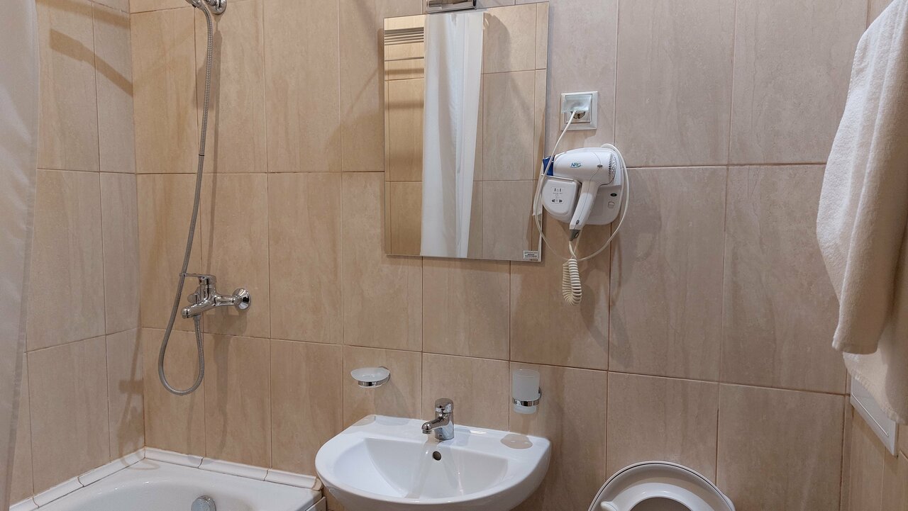 Пребыванием остались довольны. Девушка на ресепшене просто золото. Зная что нам надо уезжать рано уезжать открыла столовую и покормила на час раньше начала завтрака. Еще и подогрела в микроволновке еду которую мы привезли к брату в часть. Интернет, холодильник, кондей — все было и работало. Полотенца и ручные и для душа были на всех и чистые. Были наборы одноразовых туалетных принадлежностей, так что щетку с пастой можно было и не брать. Из минусов разве что немного мусора под одной из кроватей и отсутствие тапочек, но это уже если придираться. Остальной ковер был чистым, ходили босиком без проблем.