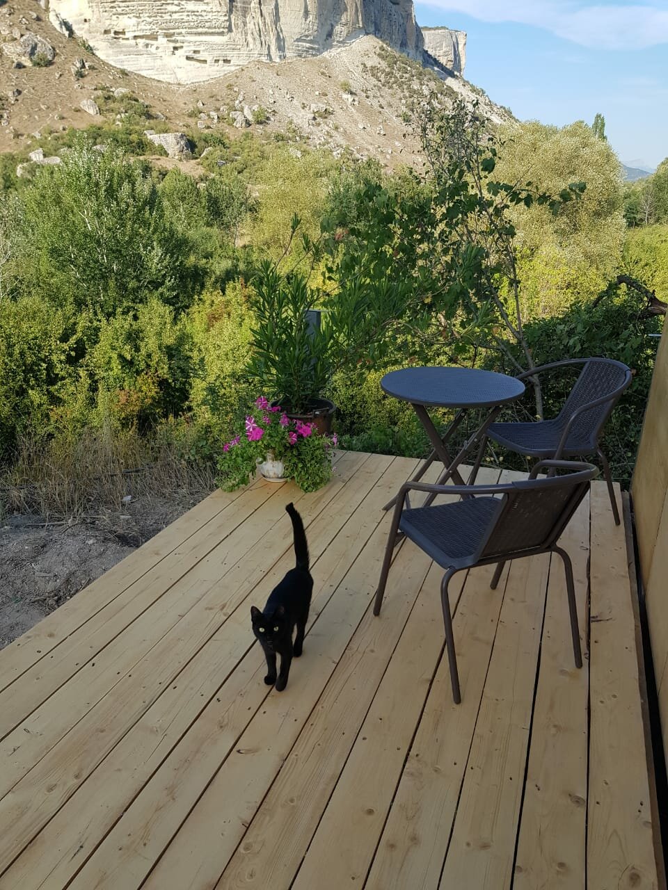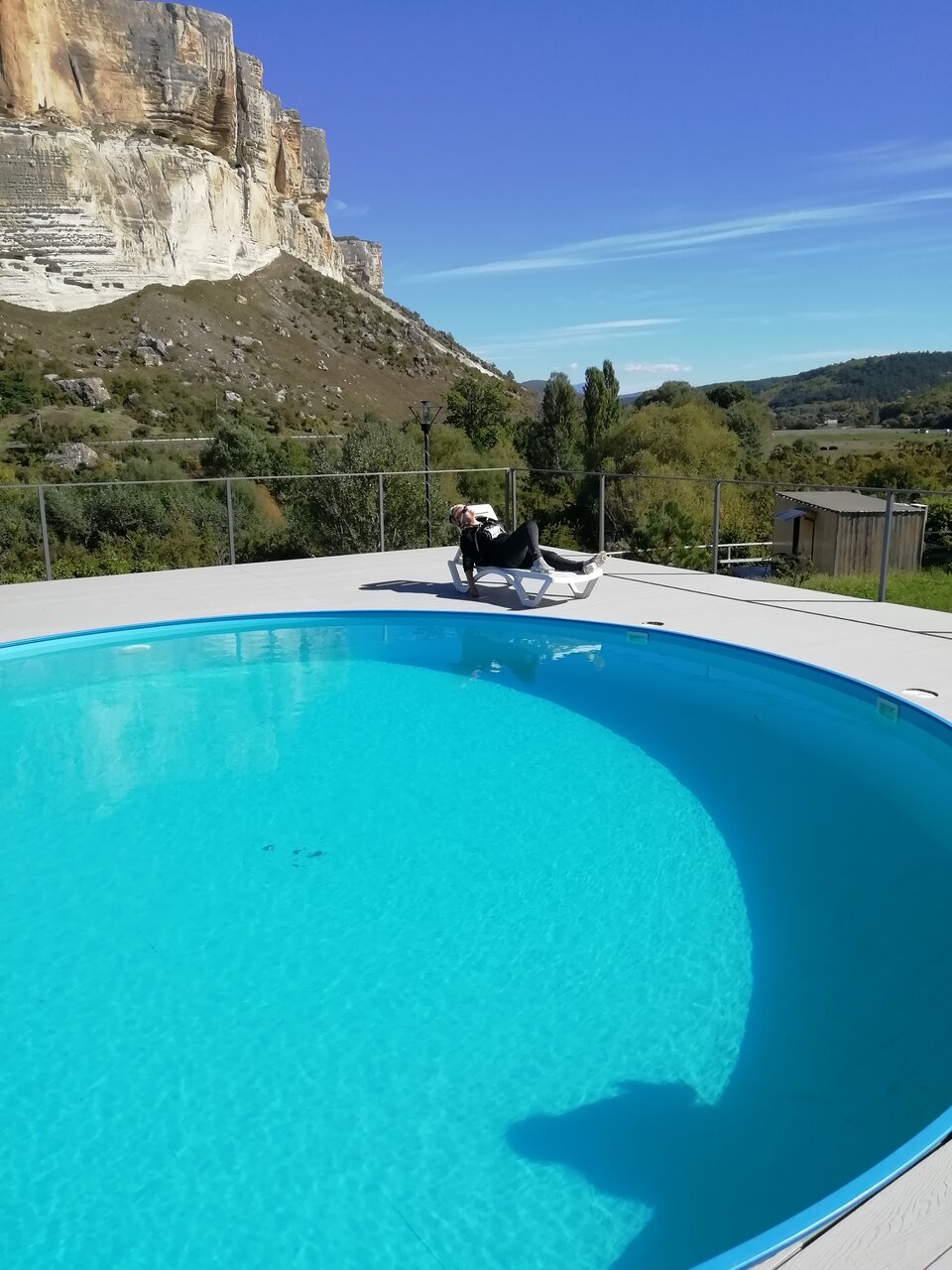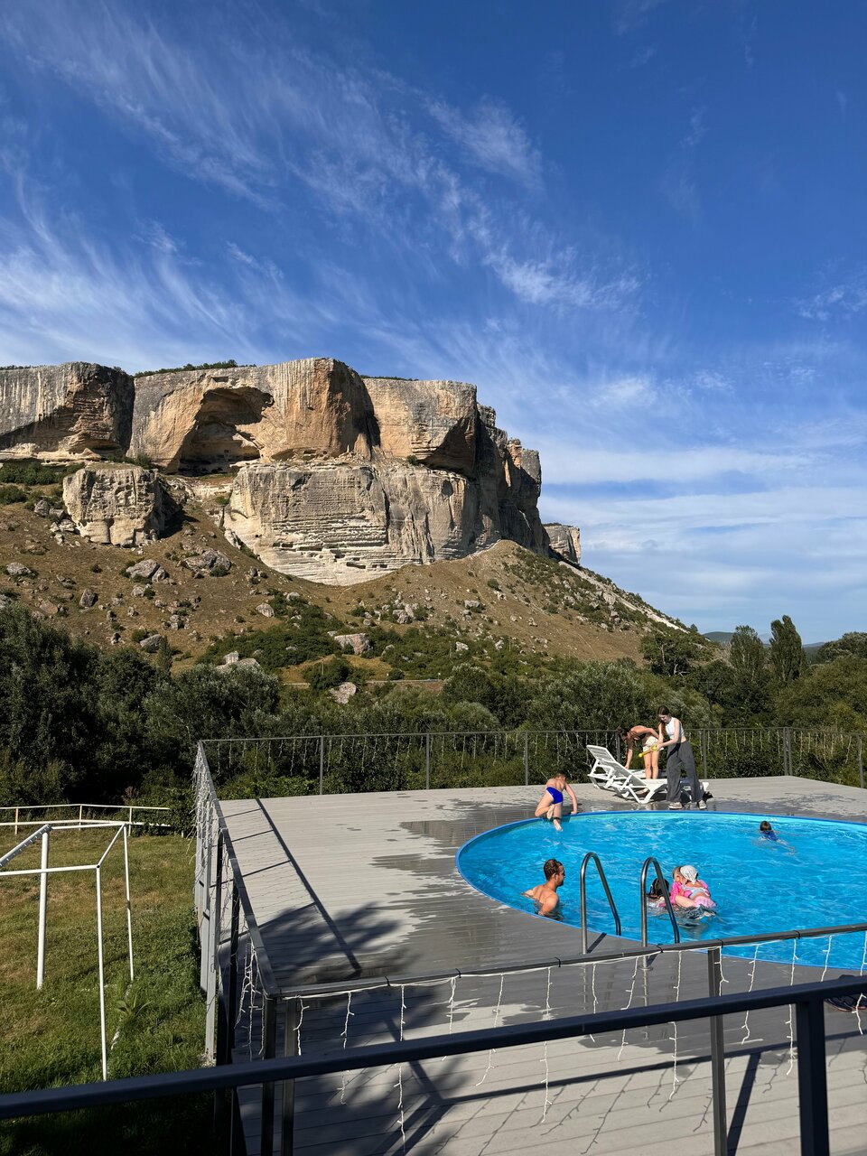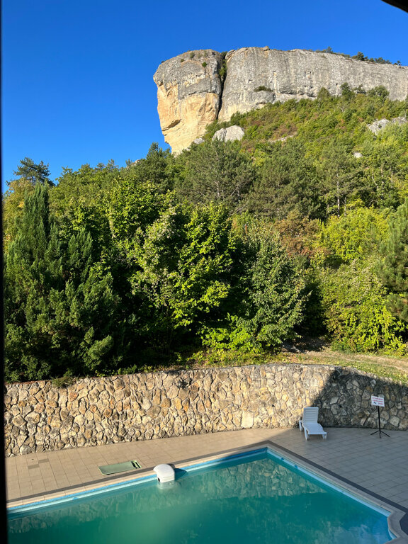 Очень живописное место. Природа Крыма на ладони! Скалы, лес, можно покататься на лошадях. Сладкий кизил, ешь сколько хочешь. Бассейн с голубой водой у подножия скал — это впечатляет. Еда тоже понравилась. Шикарный плов. Шашлык жарили свой. Прекрасный отдых… Были в начале октября, погода шикарная, очень тепло. Безусловно советую всем.