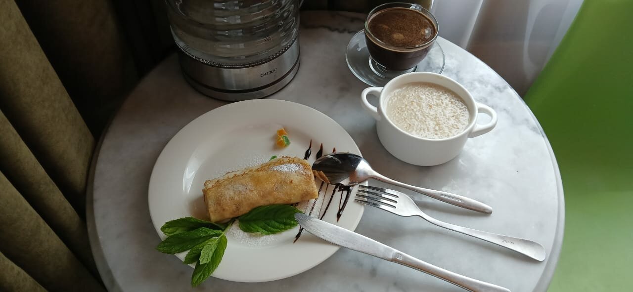 Отличное место. Уже второй раз посещаем это место. Но больше всего понравились драные коты. Рыжик у них главный босс, гонял черняка-радиста и пушистую марфу. А ещё пришёл чёрно-белый конфитюрчик и стащил со стола блинчик