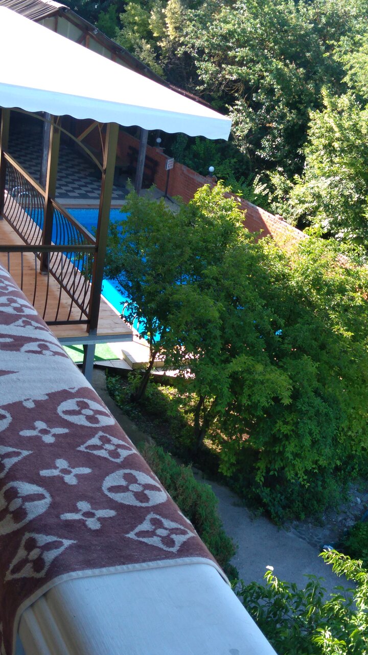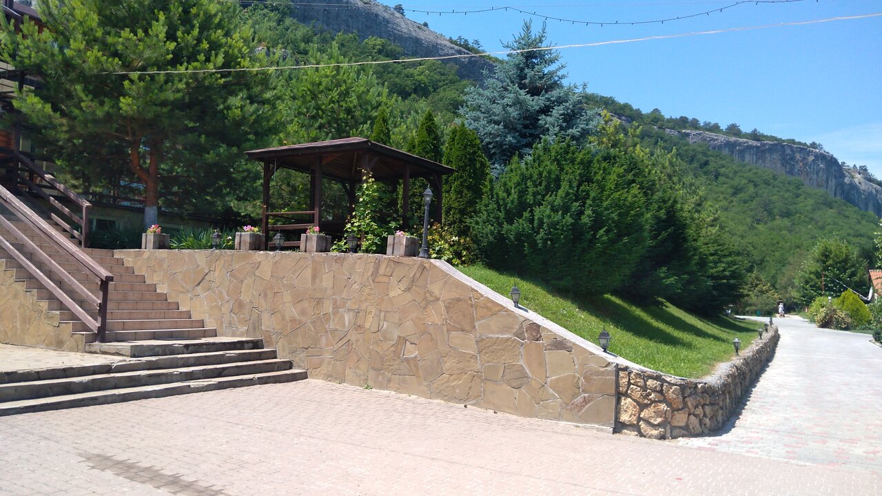 Чисто, аккуратно, хорошая кухня. Беседки уютные. В номерах не был, поэтому ничего о гостинице сказать не могу. Вид лучше всяких похвал, особенно, если у Вас хватит сил подняться на смотровую площадку. Звезду снял за бассейн и узкую дорогу на подъезде, где девушка, чуть не снесла мне зеркало
