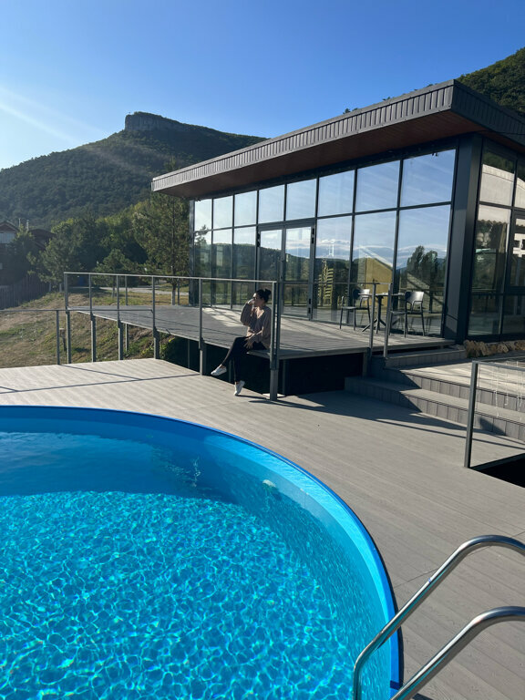 Прекрасное,живописное место с видом на горы. Беседки, парковка, территория достаточно большая. Но Я отношусь к категории инвалидов — колясочнику у меня парная ампутация ног выше колен. Поэтому перейду сразу к минусам. А именно: ! Очень хотелось покататься на квадроцикле, но нету разрешения для того , чтобы можно было прокатиться людям с инвалидностью(сослались на запрещенный закон РФ). Не смог на лошадях покататься,т.к лично хозяйка лошадей отказалась рисковать или привязывать меня к сиденью лошади: ‘Лошади могут испугаться,если я вдруг упаду’ — как она выразилась. Похоже на ущемление прав инвалидов…Я остался сильно не доволен таким резким отказом на предоставление услуг за которые Я Бы заплатил деньги на равне со всеми людьми. Вода в бассейне просто ледяная . +3 я оставлю только за прекрасную компанию своих друзей в которой я провёл замечательно время и ощутил поддержку