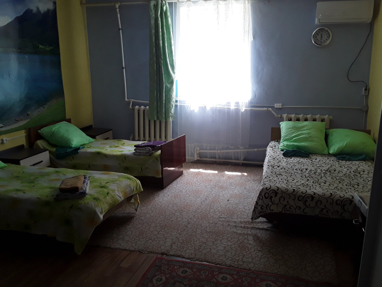 Грязно все, девушка которая показывала номер, даже не удосужилась снять обувь. Постельное белье не пахнет свежестью, мало по размеру кровати, т.е. простынь меньше чем матрас. Часть тела затрагивала вонючий наматрасник, фу противно. Про туалет с брызгами от фекалий даже говорить не хочу, о какой влажной уборке может идти речь. И это 800 рублей за человека. Не скажу что дорого, но не стоит этих денег. Пролежала всю ночь, и думала когда же этот ад кончится. Остались ночевать из за того что в нормальной гостинице не было мест, а нас было 2 семьи по 4 человека, 4 детей. Если б не дети, лучше б в машине осталась спать. Как проснулись утром, встали и уехали, даже в туалет мерзко ходить, лучше в лесу