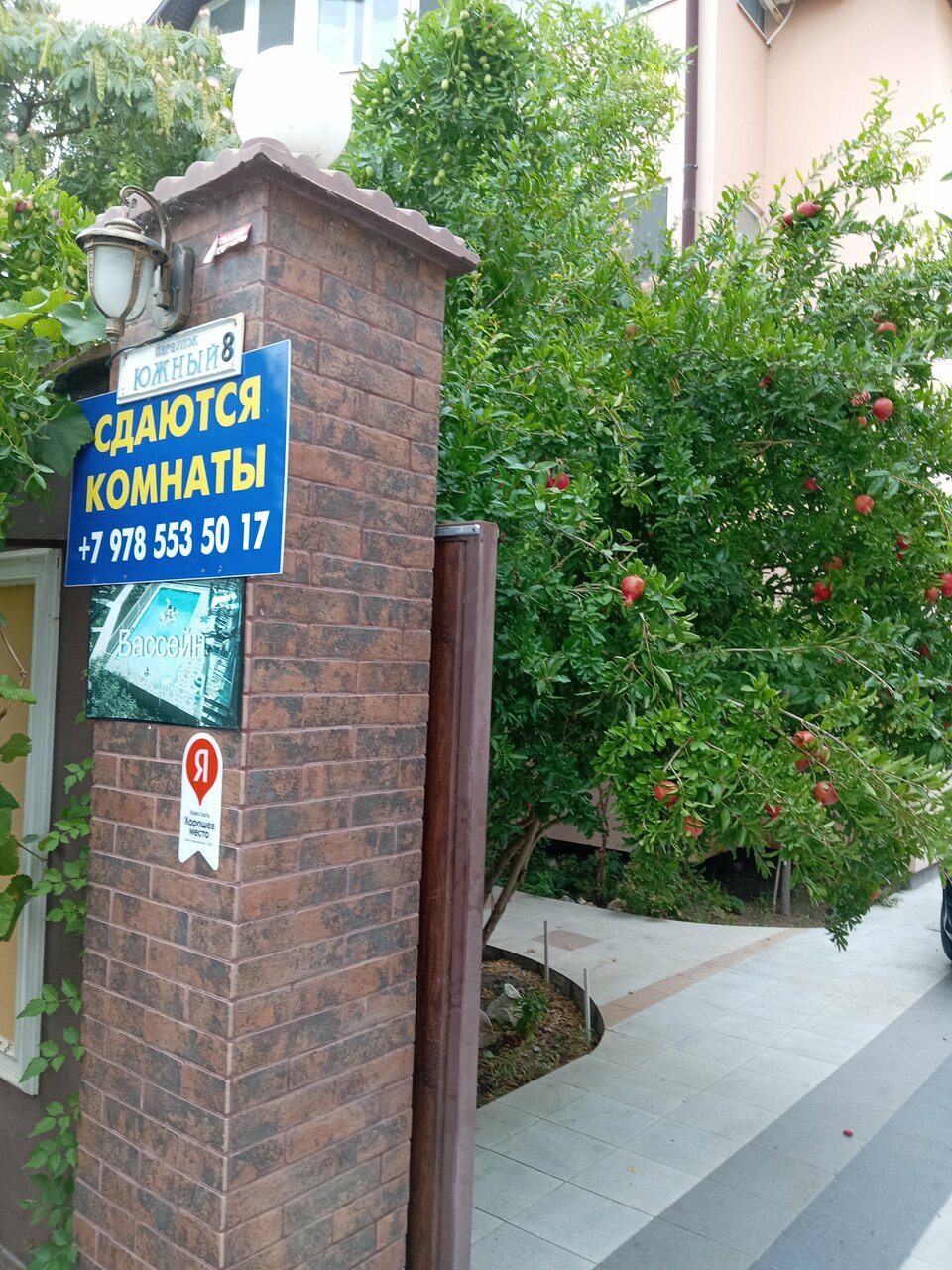 Нам понравилось! Чисто, аккуратно! Следят за порядком, до моря минут 5-7. Рядом и магазины, и овощные лавки. Бассейн на территории чистый. Хозяин отзывчивый, всегда ответит и постарается решить проблему. Мы остались довольны