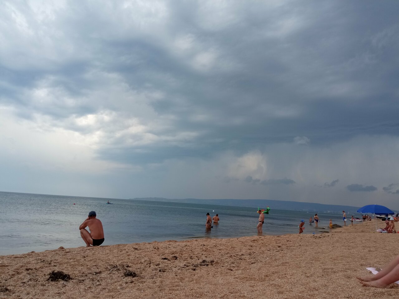 - Мало людей на пляже, ракушечно-песчаный берег.