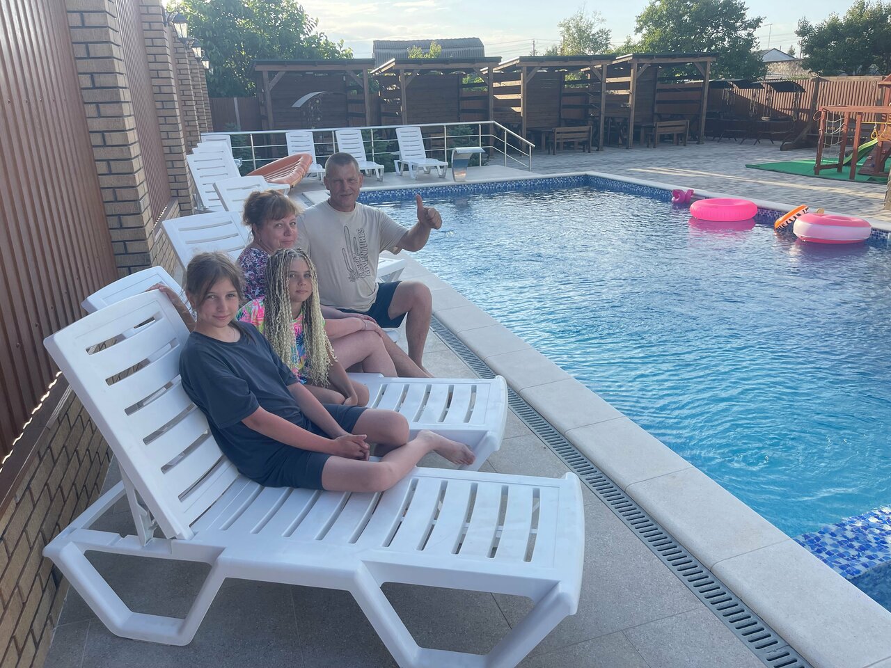 Отдыхали в гостевом домике с 1 по 6 августа. Нас было 2 пары, проживали в маленьком домике в двух двухместных номерах. Номера после ремонта, все новое, чистое. На самой территории есть мангальная зона, беседки, обеденная зона, очень просторная кухня со всем необходимым, а так же бассейн, вечером он подсвечивается. До моря идти буквально минут 7, море чистое и прозрачное. Наш отдых прошёл просто замечательно, всем, всем рекомендую остановится именно в этом гостевом доме! Хозяин-Сергей очень отзывчивый и доброжелательный, спасибо большое за то, что Вы делаете для гостей! Обязательно вернёмся ещё и не раз!!!