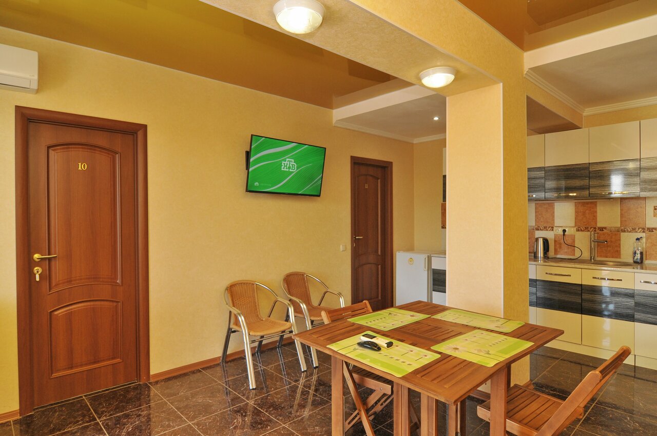 Всё нравится здесь, есть своя закрытая территория, стоянка для машин, есть своя кухня и душевая комната в номерах, мангальная зона, бассейн. С водой проблем нет, wi-fi работает достаточно хорошо. Номера удобные, чистые. Сделано все до мелочей добротно, как для себя. Внимательный и доброжелательный хозяин. Нашей семье очень понравилось. С маленькими детьми спокойно и удобно.