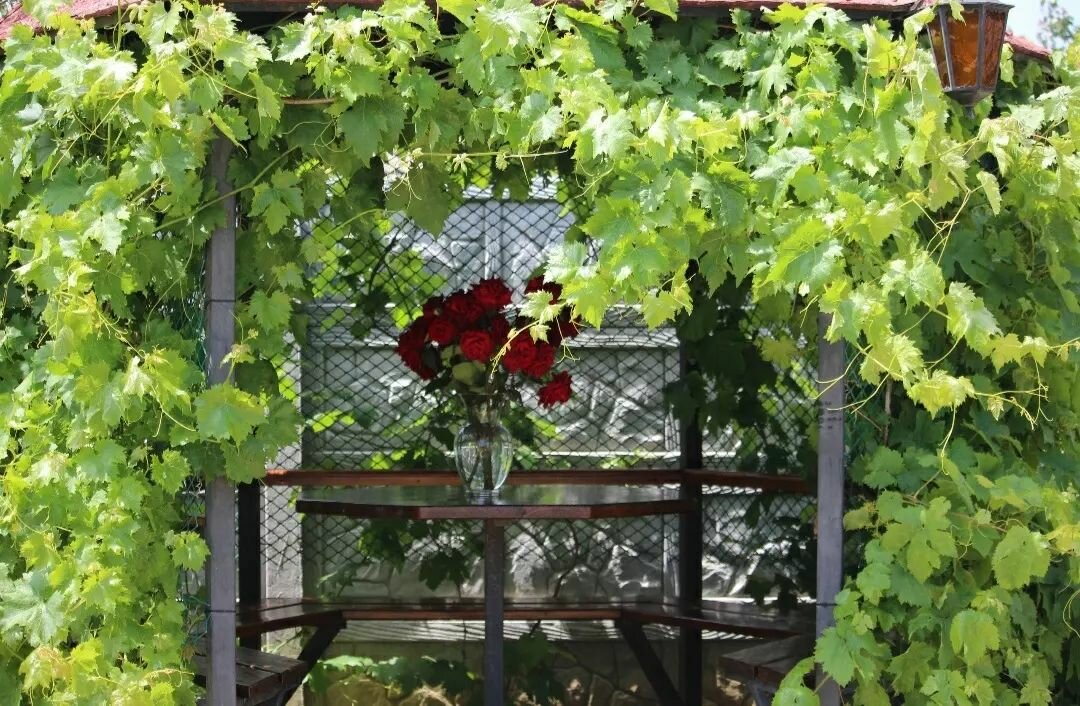 Самое главное достоинство — это бассейн!!! После обеда идти на море не хочется — а понырять в бассейн — самое то! Кроме уютных номеров, вкусных завтраков, в качестве бонуса, радушные хозяева, 6 беседок, обвитые виноградом и мангал.
