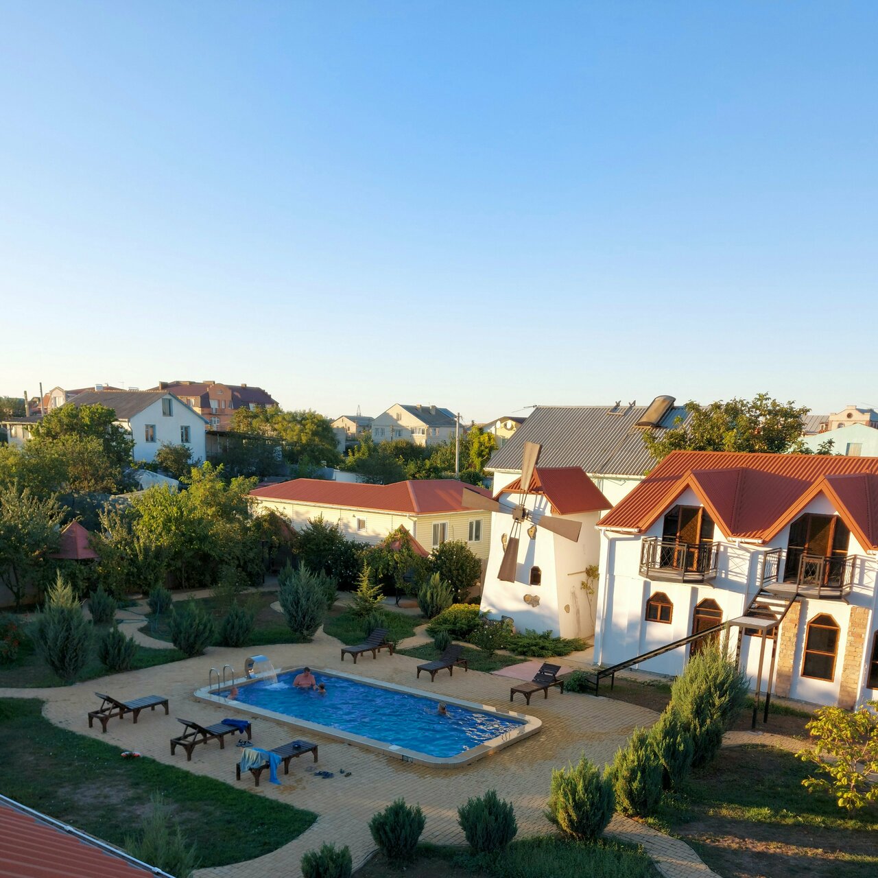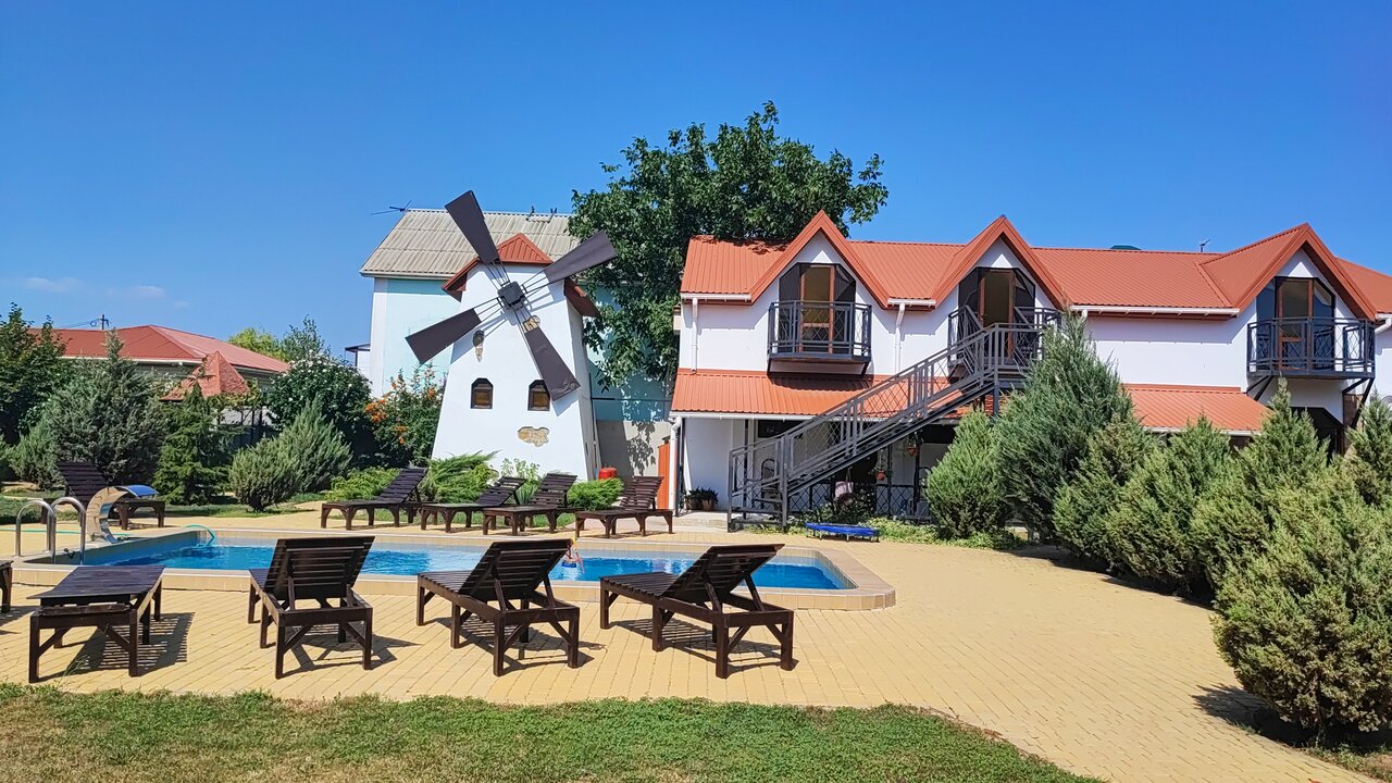 Великолепное место! Очень гостеприимные хозяева. Необычная идея с мельницей на территории. Чистый бассейн, очень ухоженная территория. Приемлемые цены. Есть кухня для гостей со всей необходимой утварью. Небольшиие беседки по периметру территории, есть зона барбекю и большая беседка. Чистые просторные номера, душ, туалет, холодильник-все для гостей. Отель находится в тихом месте, поэтому там очень комфортно и тихо как взрослым, так и детям.