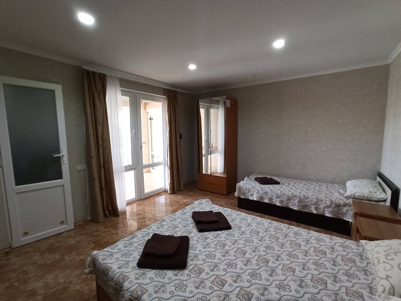 Номер хороший, чистенький, соответствует фото, персонал отзывчивый. Единственный минус до моря реально метров 400-450 — далековато.
