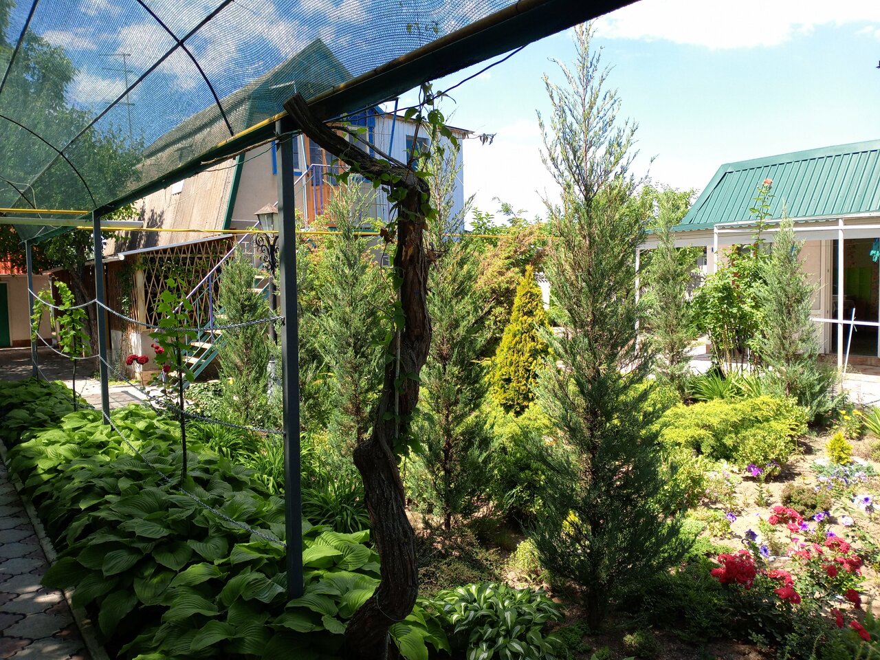 Прекрасная гостиница, доброжелательные хозяева. На территории растут плодовые деревья, разбиты цветочные клумбы, есть игровая площадка для малышей. Дворовые дорожки выложены плиткой. Везде очень чисто.Есть стоянка для машин.И главное — вменяемые цены.