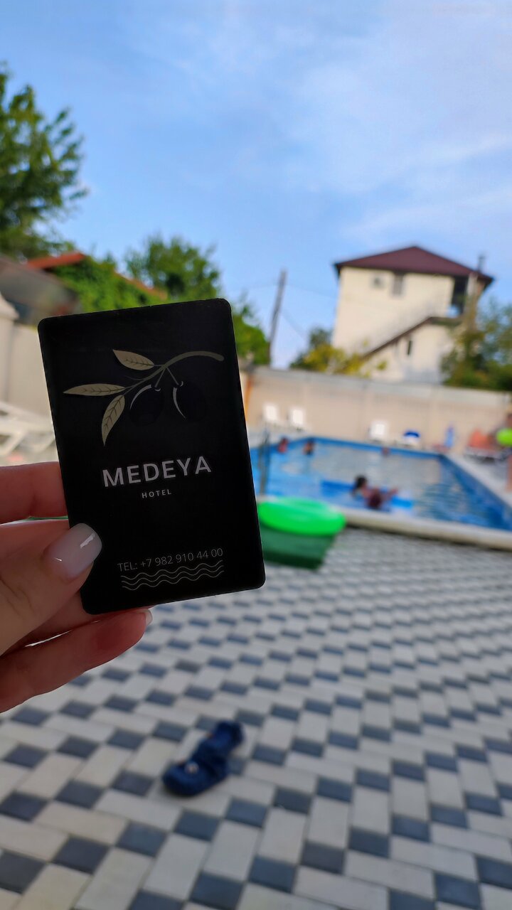 Отдыхали с 8.07. Прекрасное место для отдыха.Уютно,чисто,современно.Столовая открыта,завтраки и обеды на любой вкус. Отдельное спасибо за свежесваренный и просто вкуснейший кофе) Администрация — люди,которые стараются для отдыхающих,а не для своего заработка! Большой бассейн для взрослых и детей.Море в двух шагах ,на пляже кафе, шезлонги и бунгало. Рядом магазины,столовые и рынок.В общем, всё для комфорта! Спасибо администрации ,,Медея,,за отличный отдых!!
