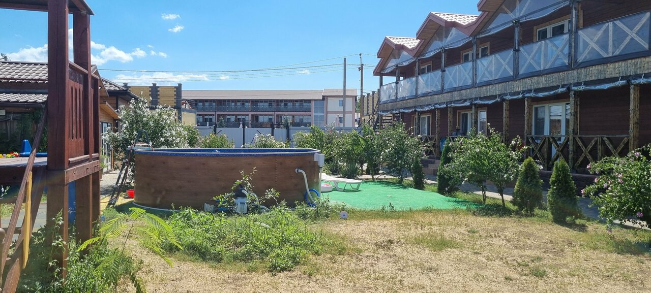 Замечательный семейный эко-отель, построенный из северного бруса леса в Крыму. Рекомендуем! С детьми отдыхать здесь очень здорово! Хозяйка очень приятная и доброжелательная женщина, всегда поможет, подскажет. Номера чистые красивые с новой мебелью. Во дворе детская площадка, качели, батуты, беседки, мангал, бассейн, лежаки, вокруг зелень, цветочки, красота). Просторная кухня со всей необходимой техникой. До пляжа прогулочным шагом 7-10 минут, рядом рынок, магазины, аптеки, столовые.