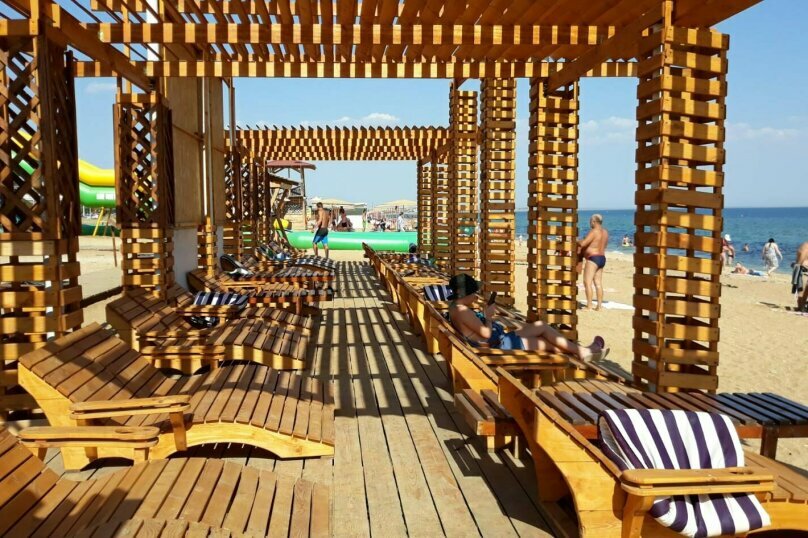 Отдыхали в 2020 году! Из плюсов: хозяйка очень приятная женщина, милая! Все новое, постельное белье сатин, в номере чисто, новая мебель, кондиционер, холодильник и душевая кабина с туалетом. Проблем с водой не возникало.На территории кухня, мангал детские батуты и горка с качелями. Из минусов: очень далеко от моря! Будьте готовы идти пешком 15 минут по жаре или на машине, шумоизоляция никакая, слышно все, каждый скрип. На территории пока еще мало зелени, только посажено, ждите когда вырастет)) плита на кухне индукция, трудновато готовить( посуда не предназначена) напротив отель прибой- с 8 утра громкая зарядка, анимация до поздна и дискотеки) нам не мешало!! А еще wifi ловит только на улице и в номерах ближе к входу, чем дальше, там нет связи. В целом не плохо.