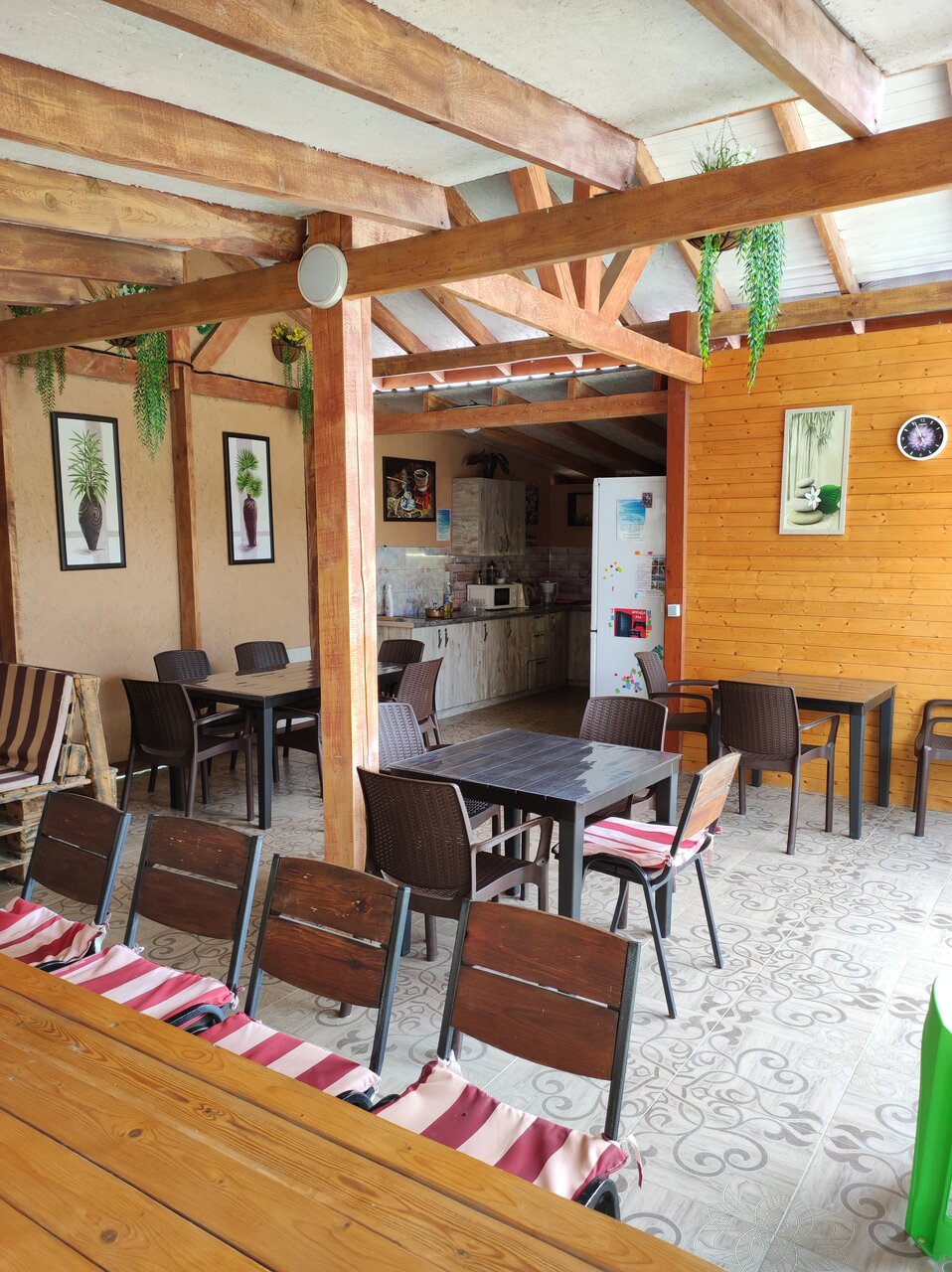 Отличное место для отдыха. Отличные хозяева, общительные,можно было обратиться по любому вопросу.Были в конце июня, всё понравилось. Отличный номер, душ, туалет, холодильник, кондиционер, телевизор. На территории бассейн, детская площадка, 2 батута. Столовая. Море не далеко. В шаговой доступности магазины, аптеки, кафе и столовые. Возле гостевого дома парковка.