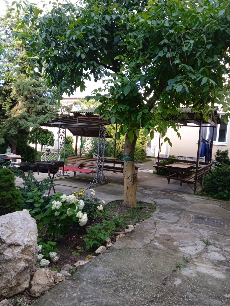 - Хорошая зона отдыха (сад, гамаки, качели).