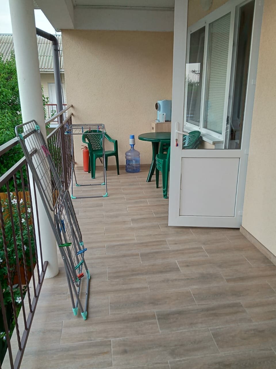 В номере чистенько. По- видимому, недавно сделан ремонт. 2 раза в неделю- уборка, смена белья и полотенец. На баллончике- пластиковые столы и стулья. На площадке отеля есть игровой детский комплекс, что очень выручило. Только после дождя было всё грязное, пришлось протирать самой. И некоторые детали комплекса были не закреплены. Вечером включали на уличном проекторе мультфильмы. Когда въезжали- шли ремонтные работы, это смутило — шум и грязь от отделочных работ так и были с нами на протяжении всего пребывания! Так же меня лично раздражало кудахтанье кур под окнами, приходилось даже пару раз закрывать окно днем. И с утра, часа в 4,- громко кукарекал петух… В целом- в номере всё есть: кондиционер, телевизор, двуспальная кровать, санузел с душевой, кухонный уголок с плитой, холодильником, раковиной, посудой, обеденный стол. До моря идти не слишком далеко, через рынок.