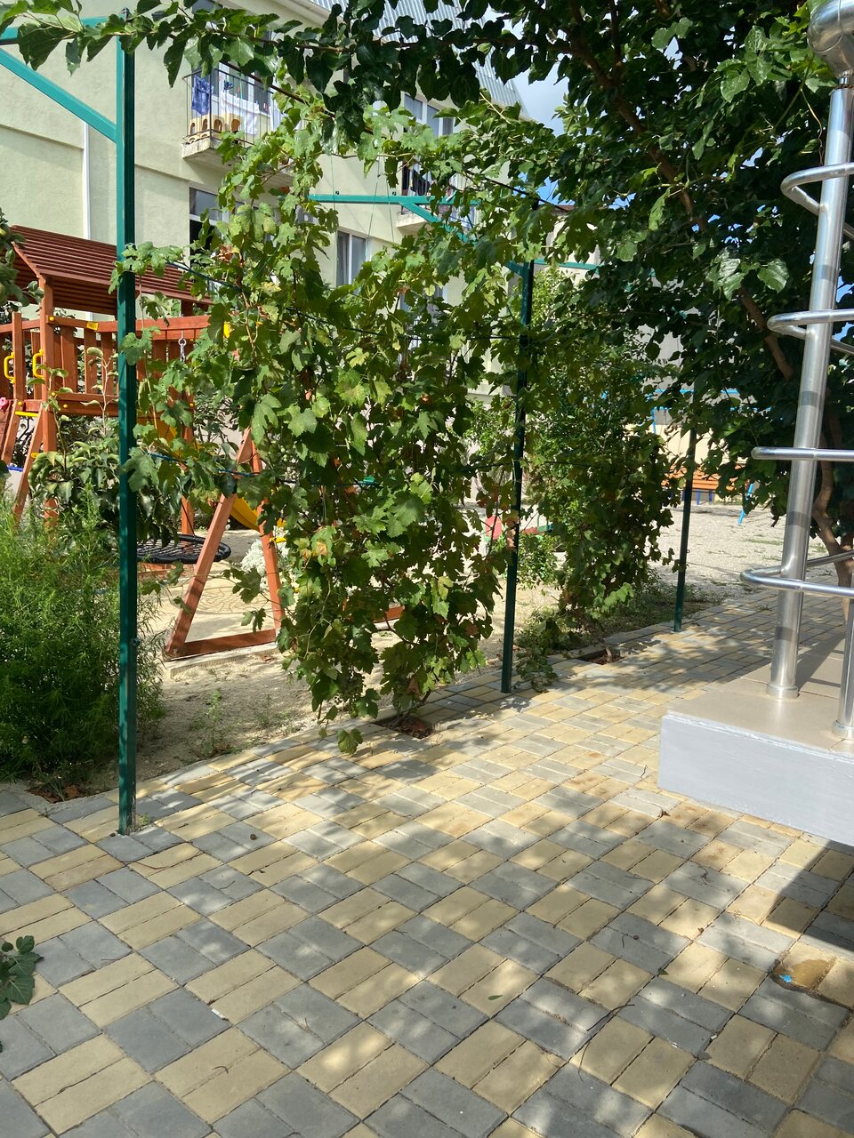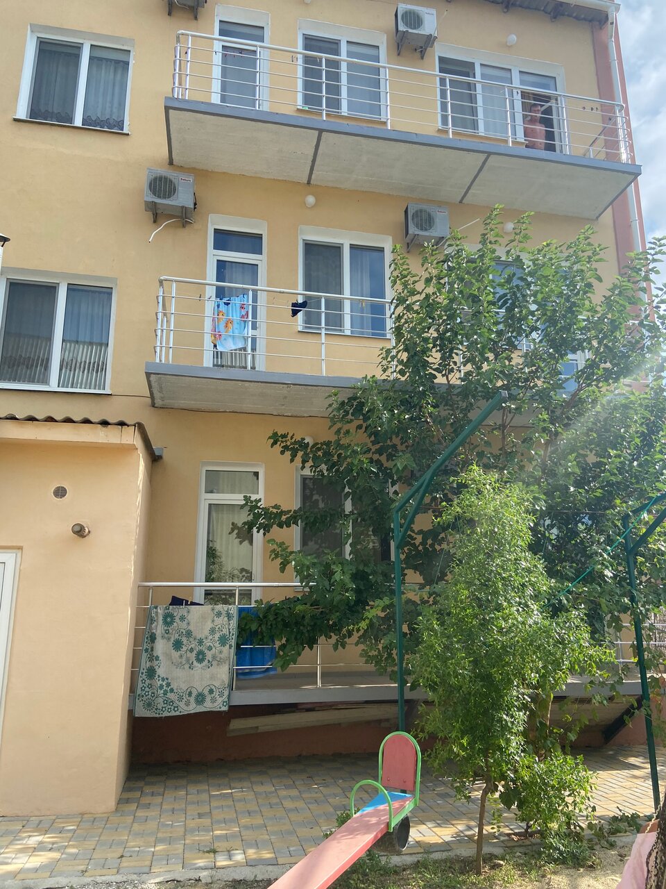 Гостиница супер,есть детская площадка,мангал,удобства на 5+,хозяева очень добрые и понимающие люди,спасибо за отдых!!!!наш заезд был 08.08 и выезд 17.08 до моря 10 минут ходьбы,не далеко есть продуктовые магазины