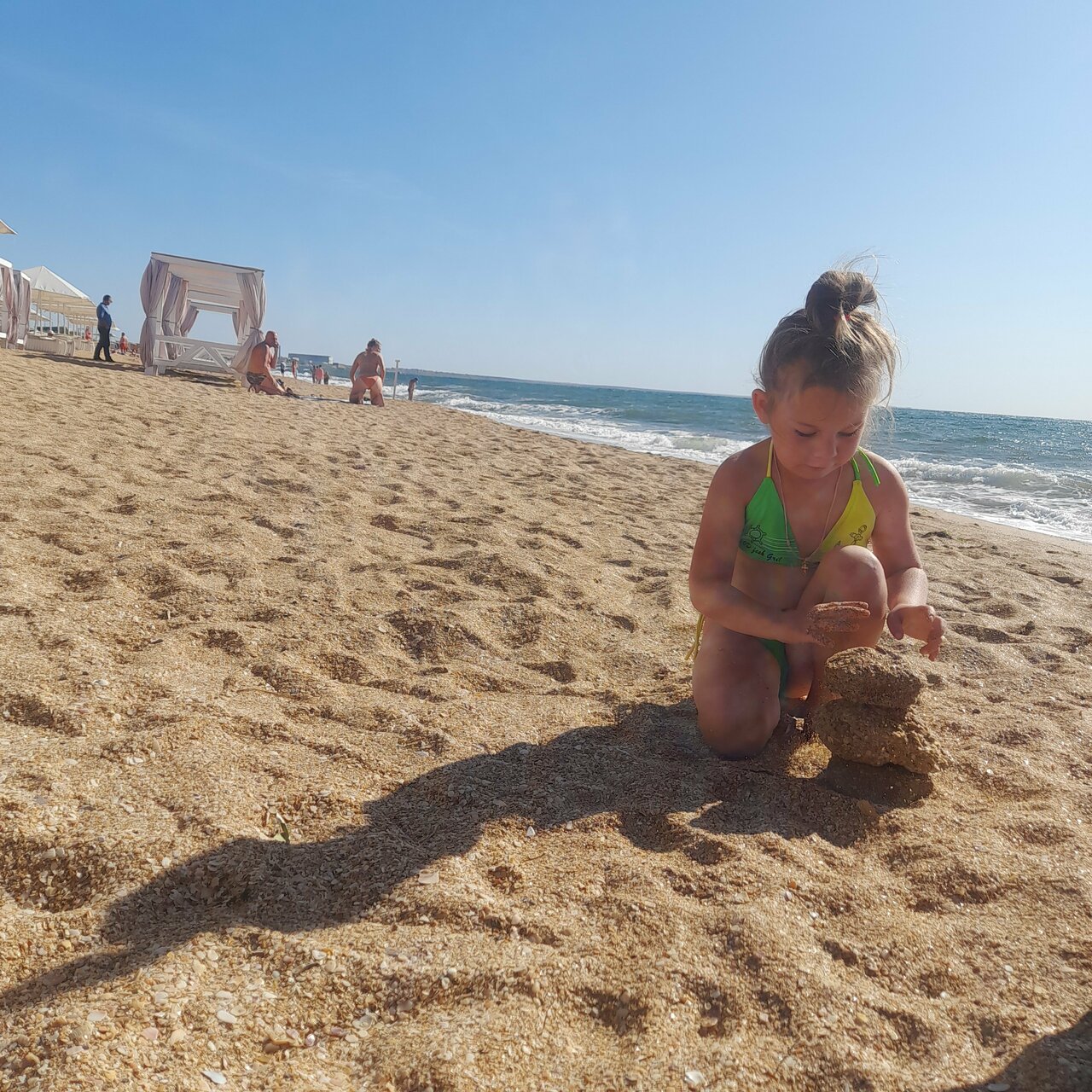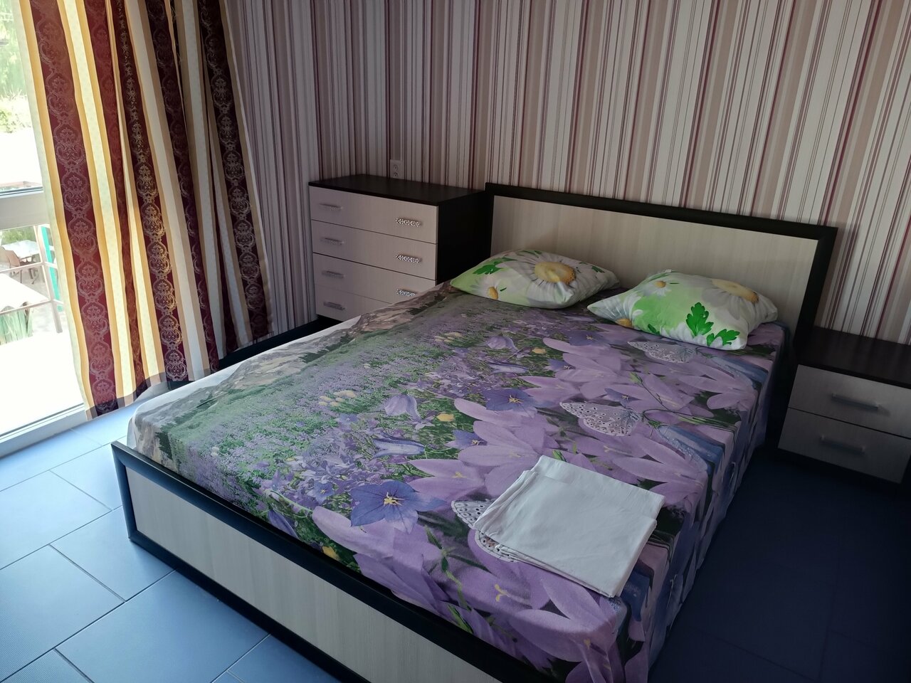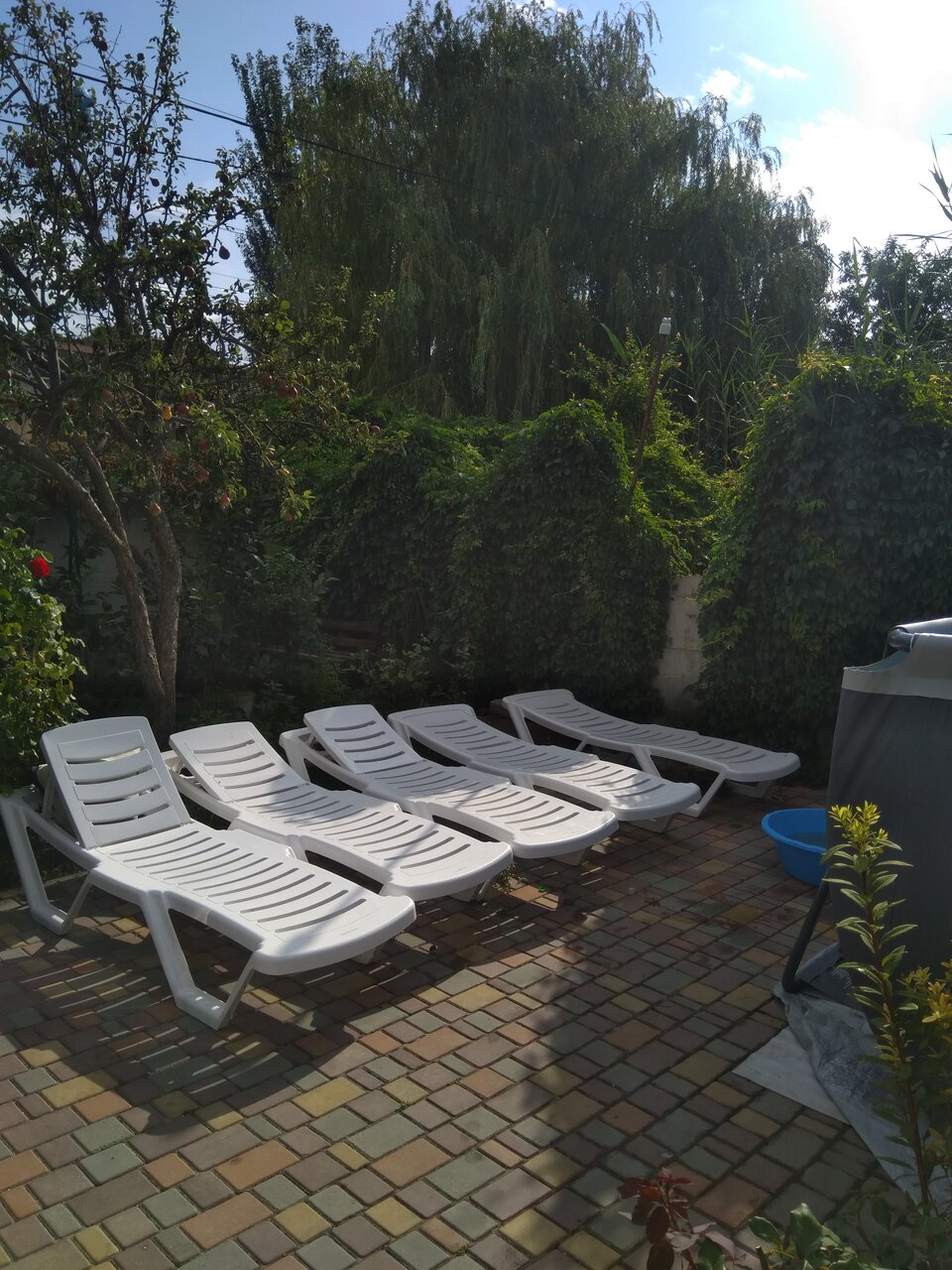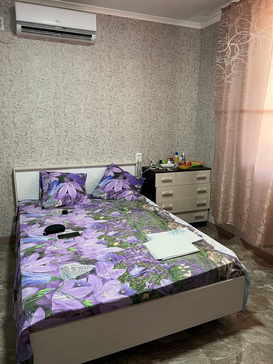 Комната была неплохая,были полотенца,чистое постельное,машино место под солнцем,если вы на третьем этаже лестница в нарнию,вечером напора воды нет,кухня и туалет неудобны,но сам хозяин хороший,до моря 5 минут,море было все в растениях