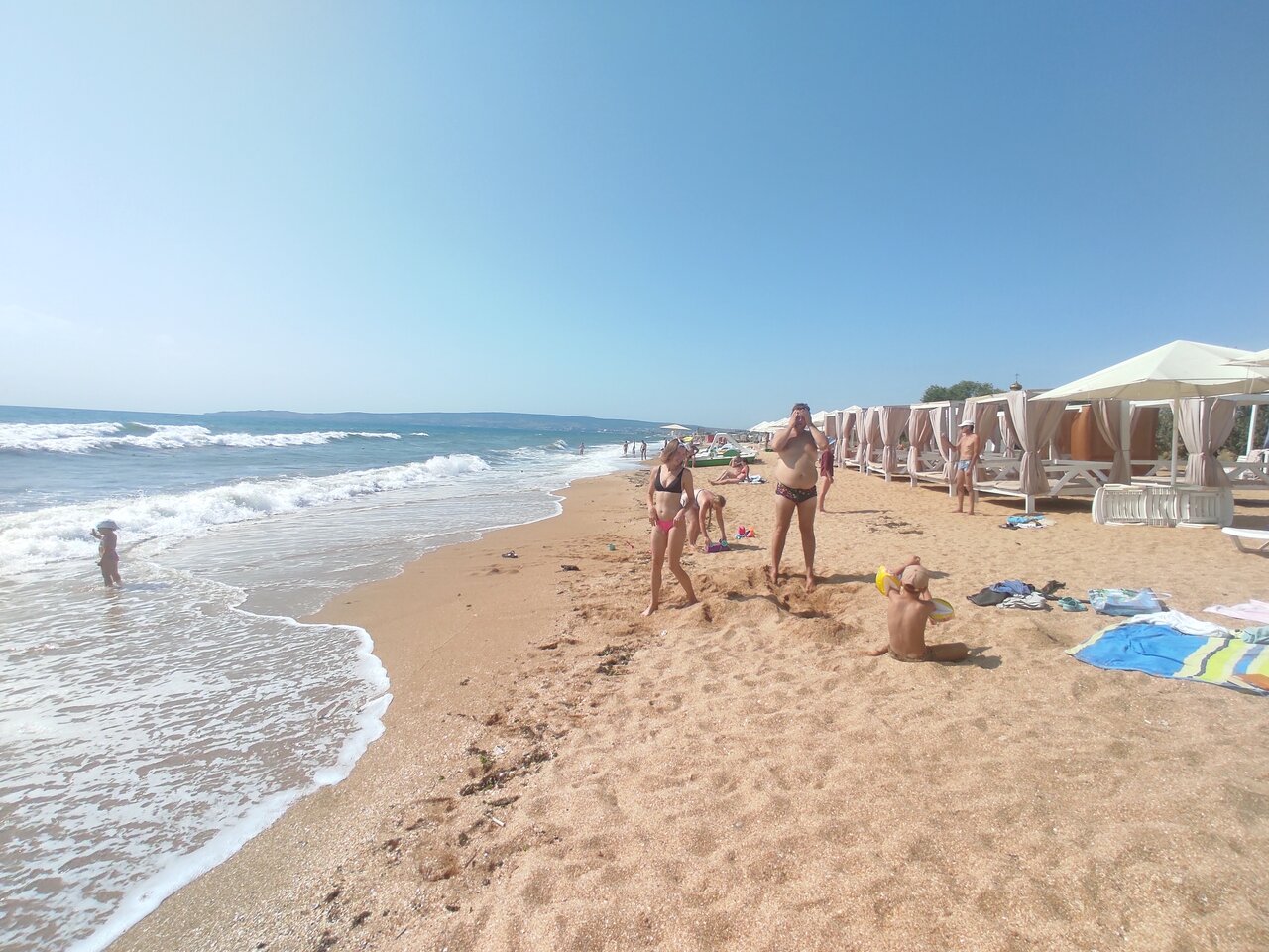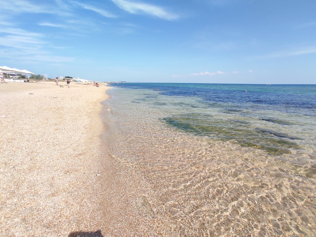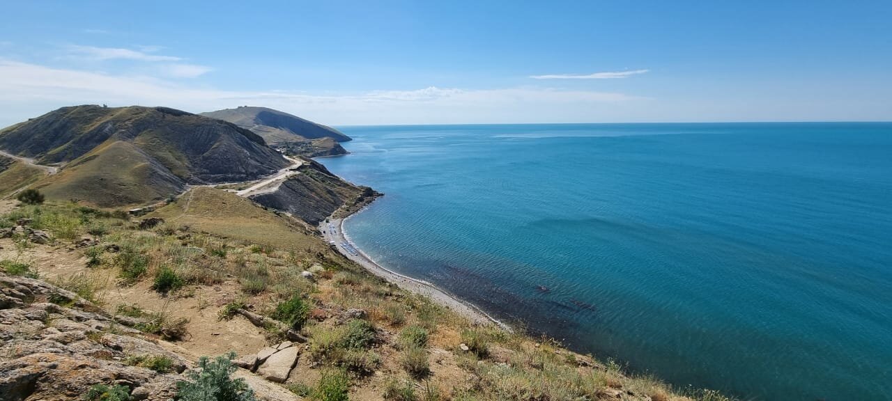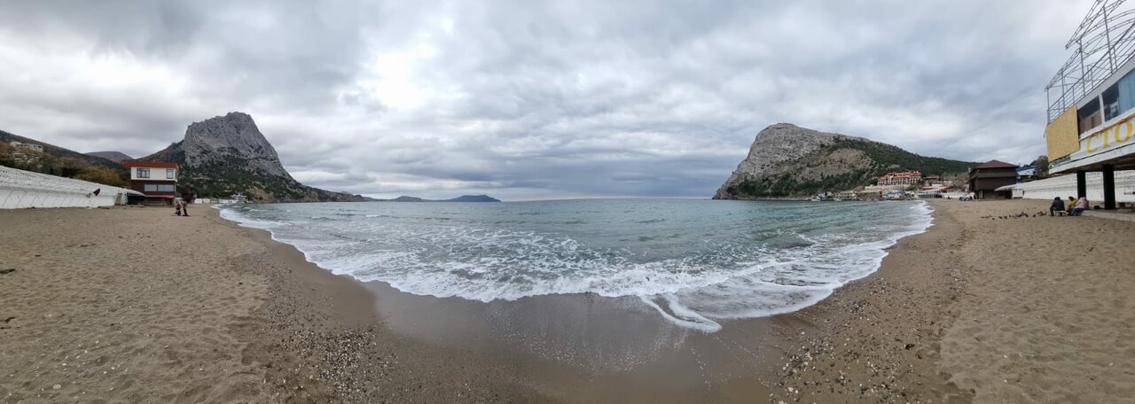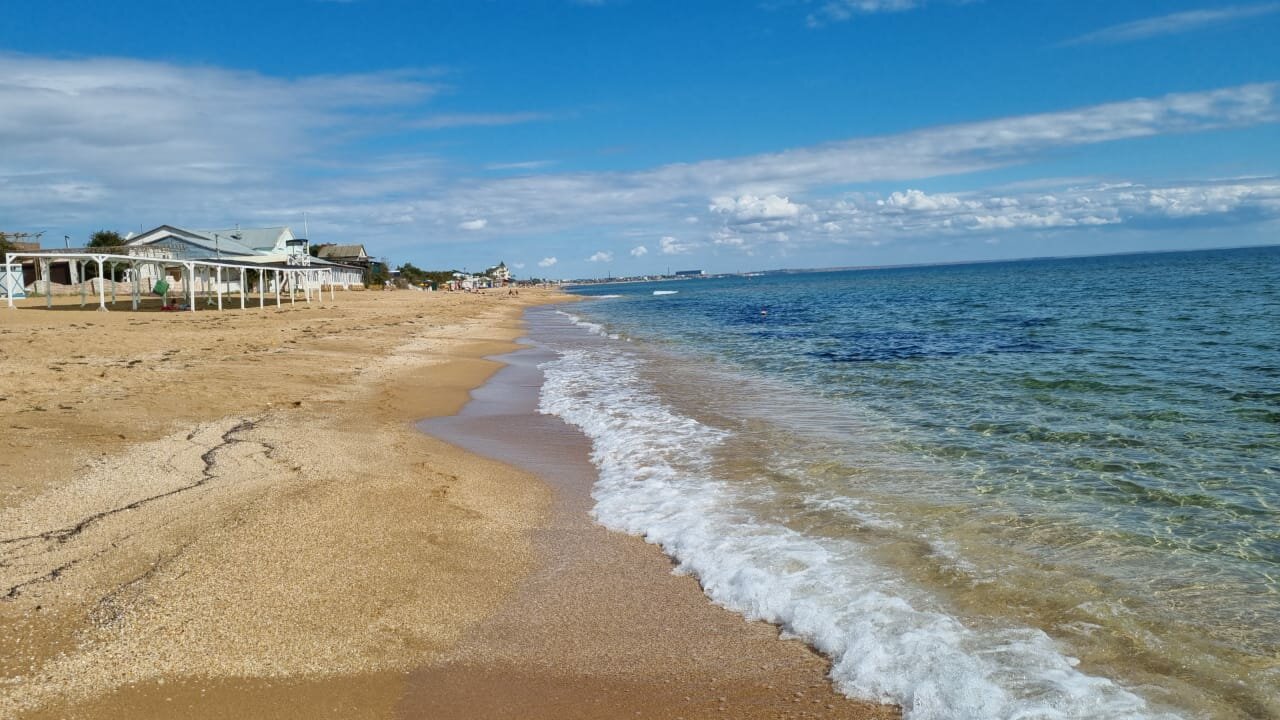 Пляж песок из мелкой ракушки, ноги тонут . Кайф . Вода чистая , дети были в восторге строя замки из песка .. но на этом пожалуй все . Жилье снять можно на месте . Еда в столовой , ценник на 4 примерно 1200 р . Да самые низкие цены , дальше Коктебель уже в два раза дороже …