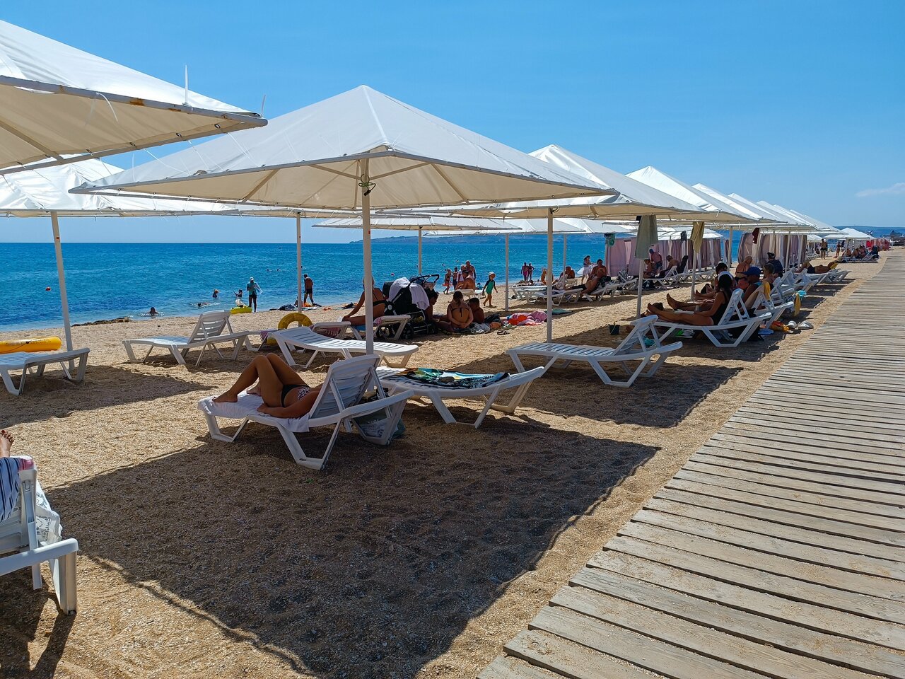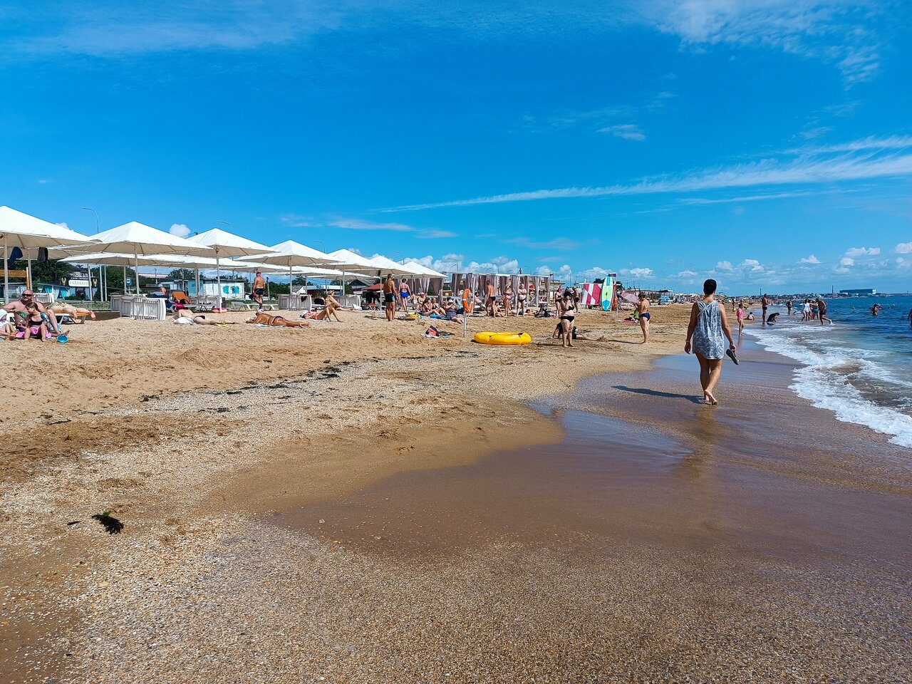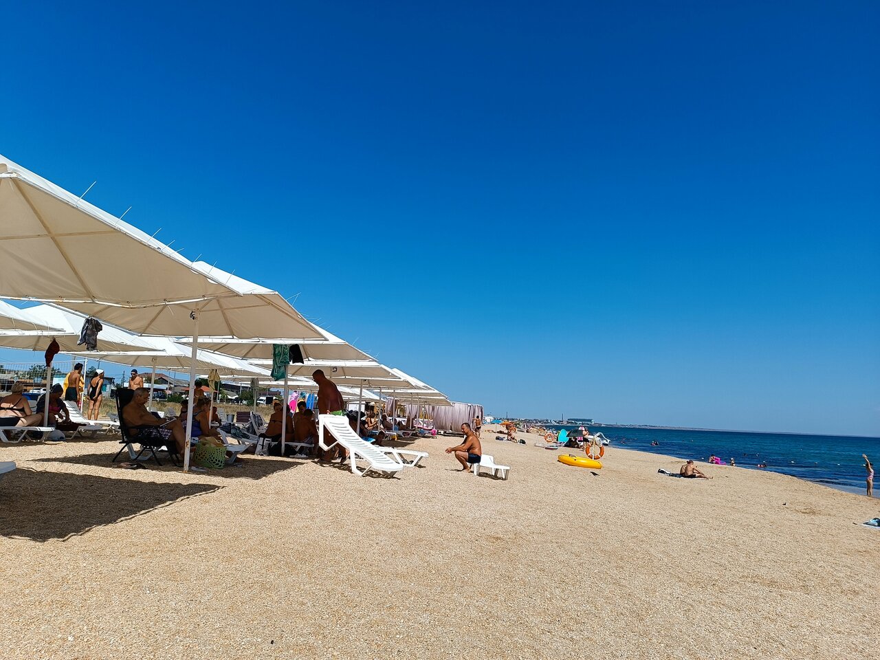 Пляж песок из мелкой ракушки, ноги тонут . Кайф . Вода чистая , дети были в восторге строя замки из песка .. но на этом пожалуй все . Жилье снять можно на месте . Еда в столовой , ценник на 4 примерно 1200 р . Да самые низкие цены , дальше Коктебель уже в два раза дороже …