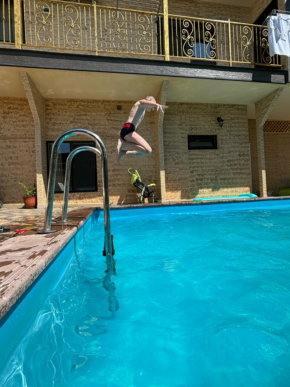 Отличное место, море рядом, через дорогу. Номера хорошие,чистые. Есть бассейн, но увы так и не получилось в нем покупаться, с моря уже приходили уставшие. Но напрд купался. Единственный минус, нет кухни. Готовить и небыло необходимости,рядом столовая и очень вкусная ,но взять хотя бы нож или тарелку негде. А так все понравилось. Спасибо