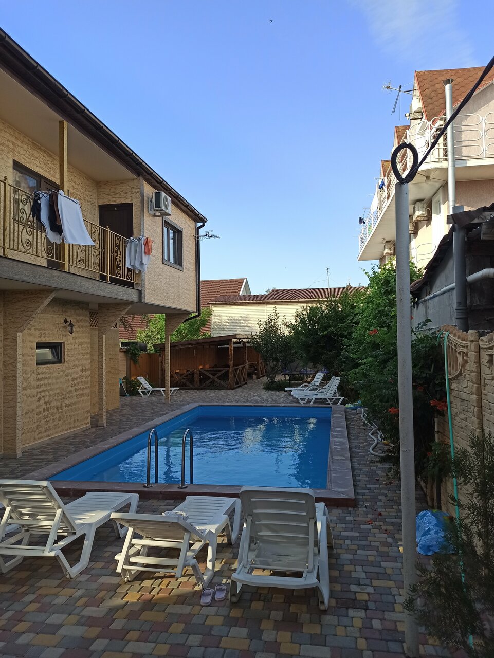 Отличный гостевой дом, отельного уровня. Чисто, уютно, комфортно. Очень дружелюбные хозяева, всегда приветливы, всегда готовы помочь. При отеле есть разливное пиво, небольшое кафе. Бассейн, кухня общая и зона столовая под навесом. До моря меньше 5 минут. Обязательно бы вернулся сюда снова. Надеюсь получится) Спасибо большое за гостеприимство!