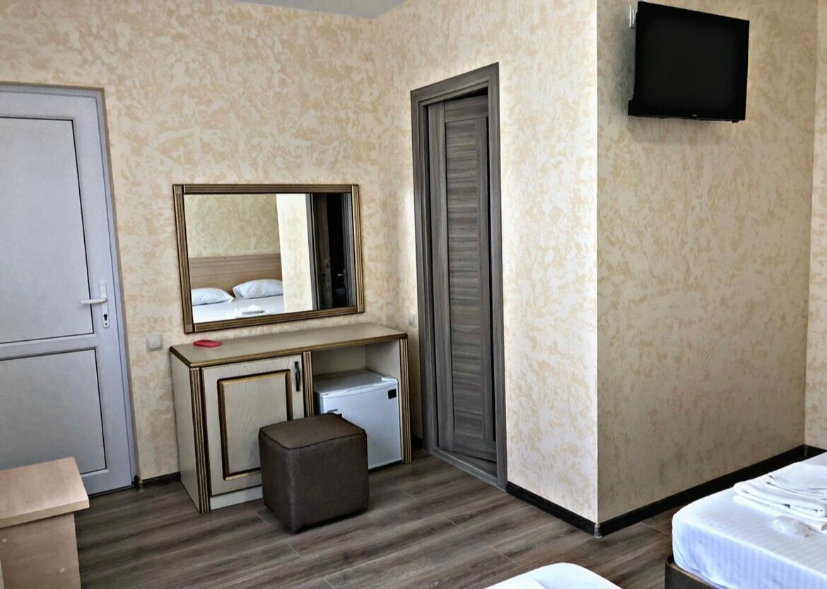 Отличный гостиный дом, как и хозяева. Персонал выполняет работу на все 100%. В номерах есть все необходимое (кондиционер, туалет, душ) чистота на уровне своего дома, полотенца,чистое постельное белье, своё кафе и пиццерия, собственная парковка в 5 минутах ходьбы, до моря так же минут 5 не спеша. Во дворе есть кухня, бассейн (чистый), беседка. Цена на номер ниже чем во многих рядомстоящих отелях. Вобщем я и моя семья очень довольны данным гостевым домом.