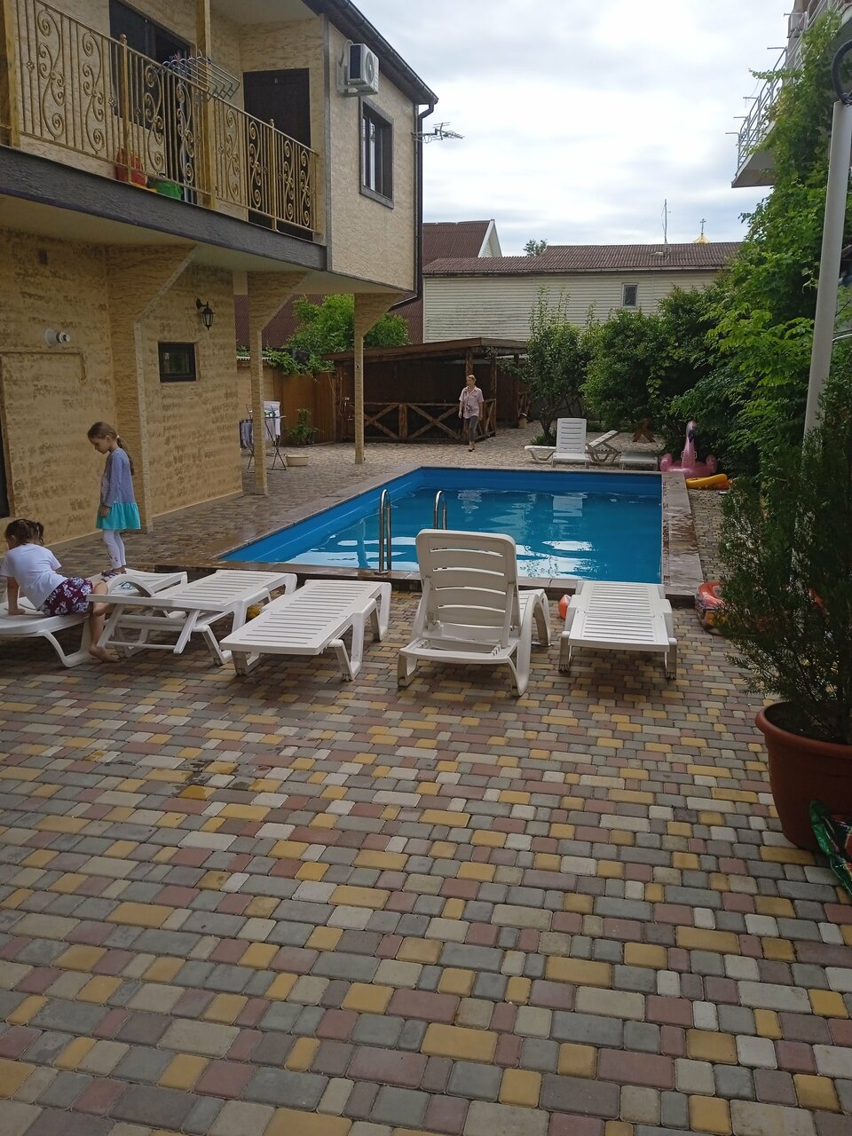 - Наличие бассейна и зон отдыха (шезлонги, детский батут, горка).; Хорошее соотношение цены и качества.; Чистота и порядок на территории.; Близость к морю (5 минут пешком).; Дружелюбный и заботливый персонал.